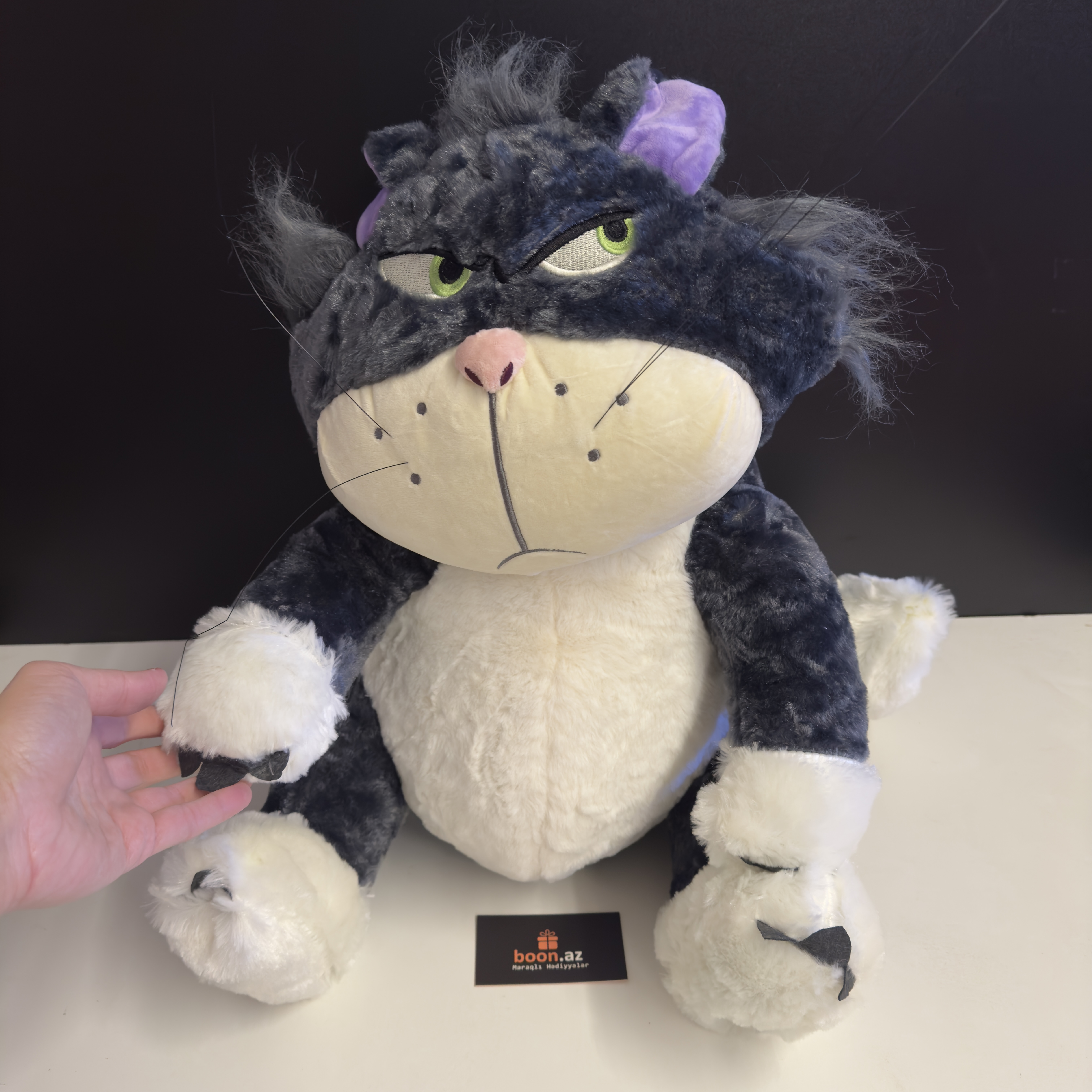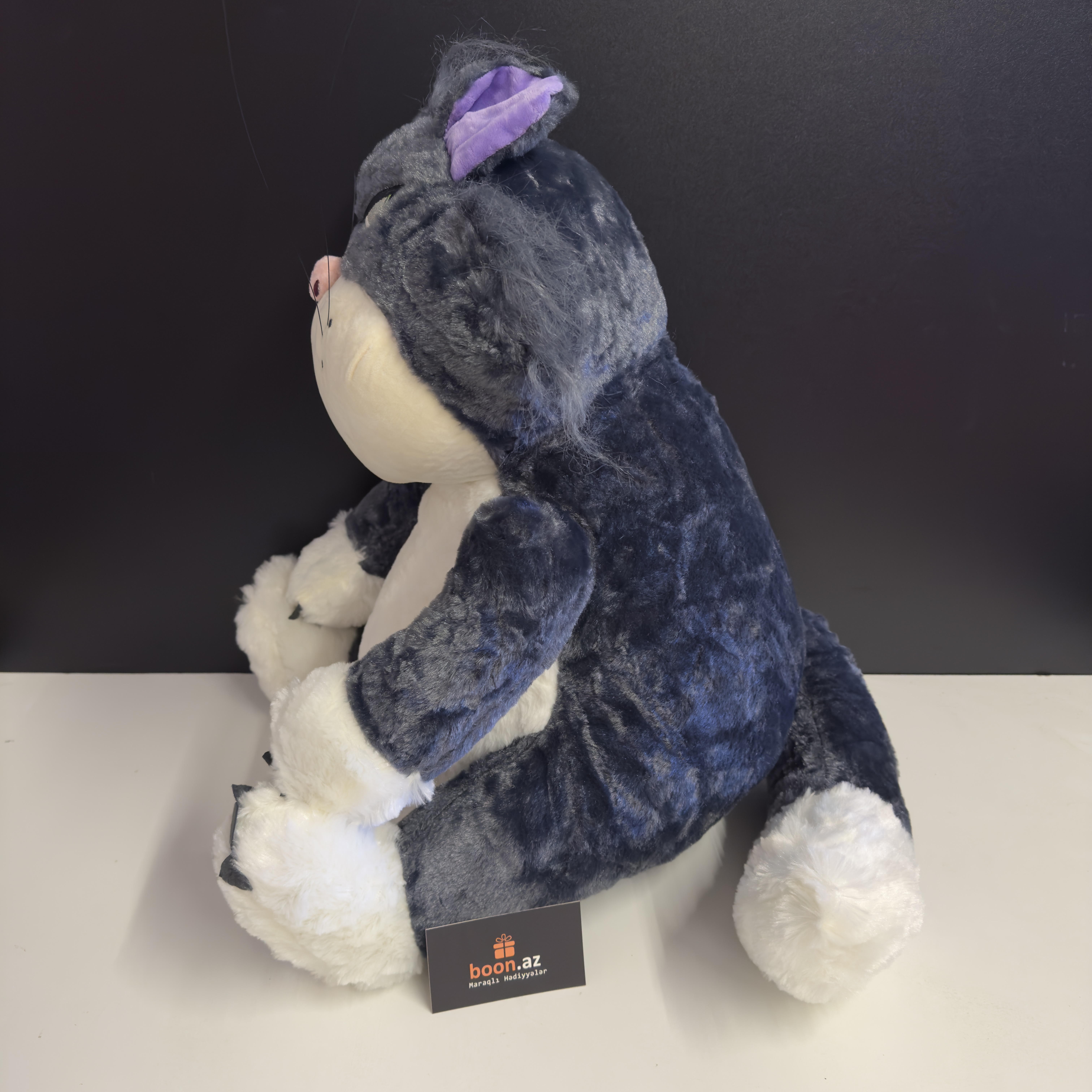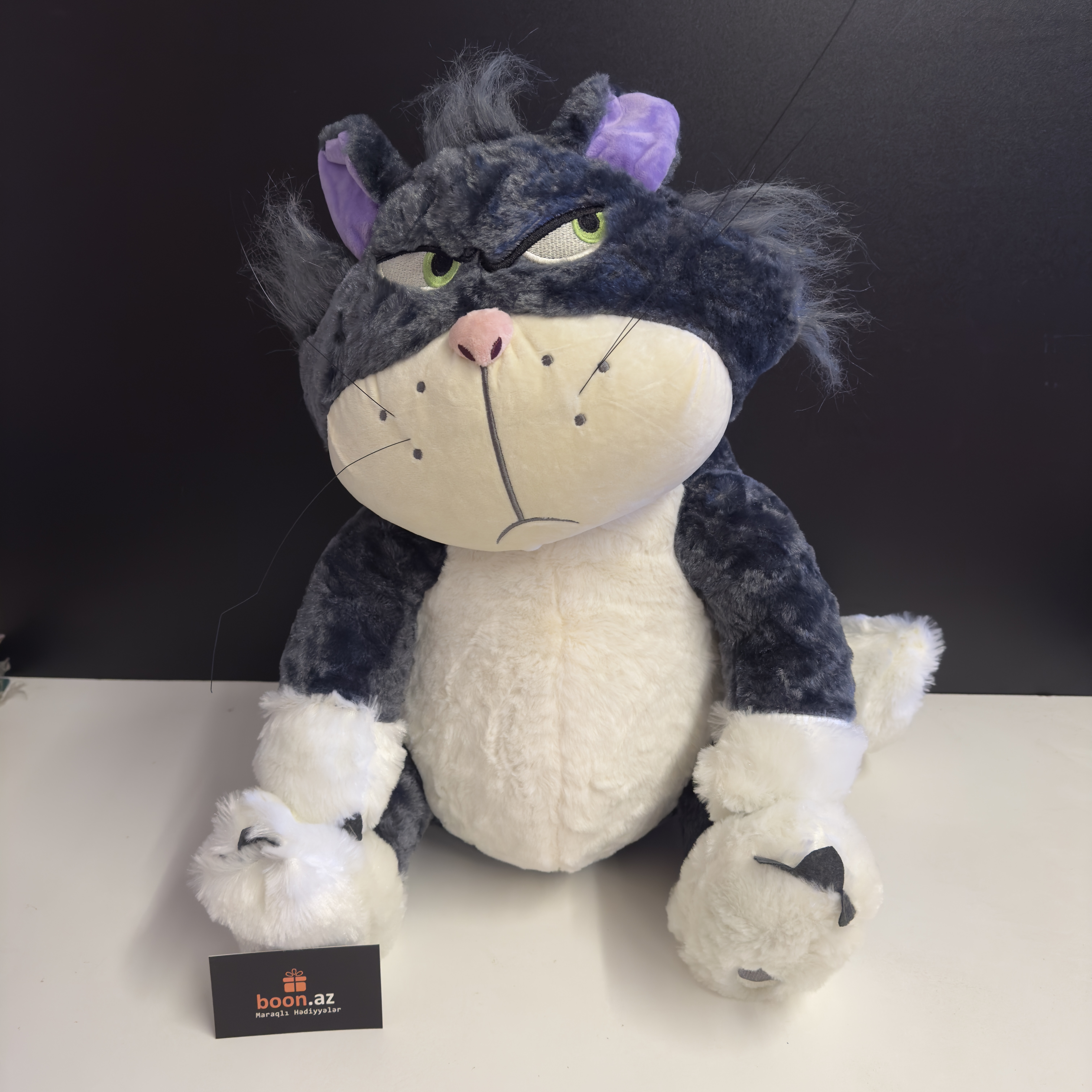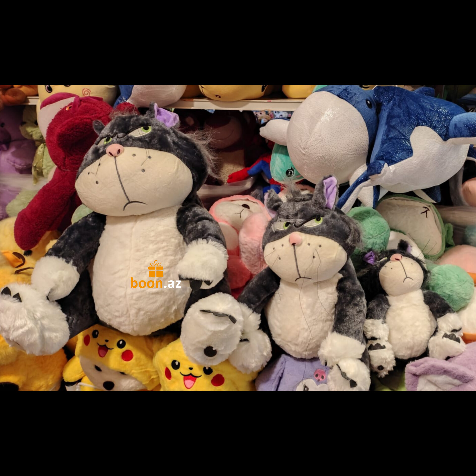 Большой и невероятно уютный плюшевый кот с забавным «недовольным» выражением мордочки станет ярким акцентом в любой комнате и идеальным подарком для любителей необычных игрушек.