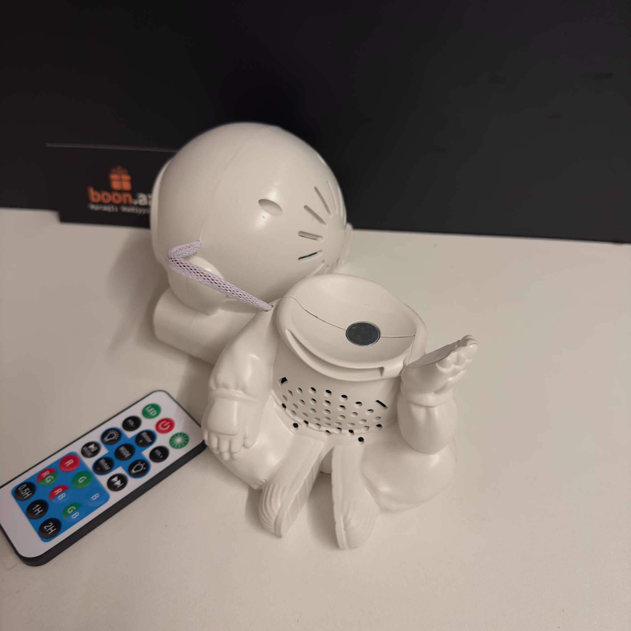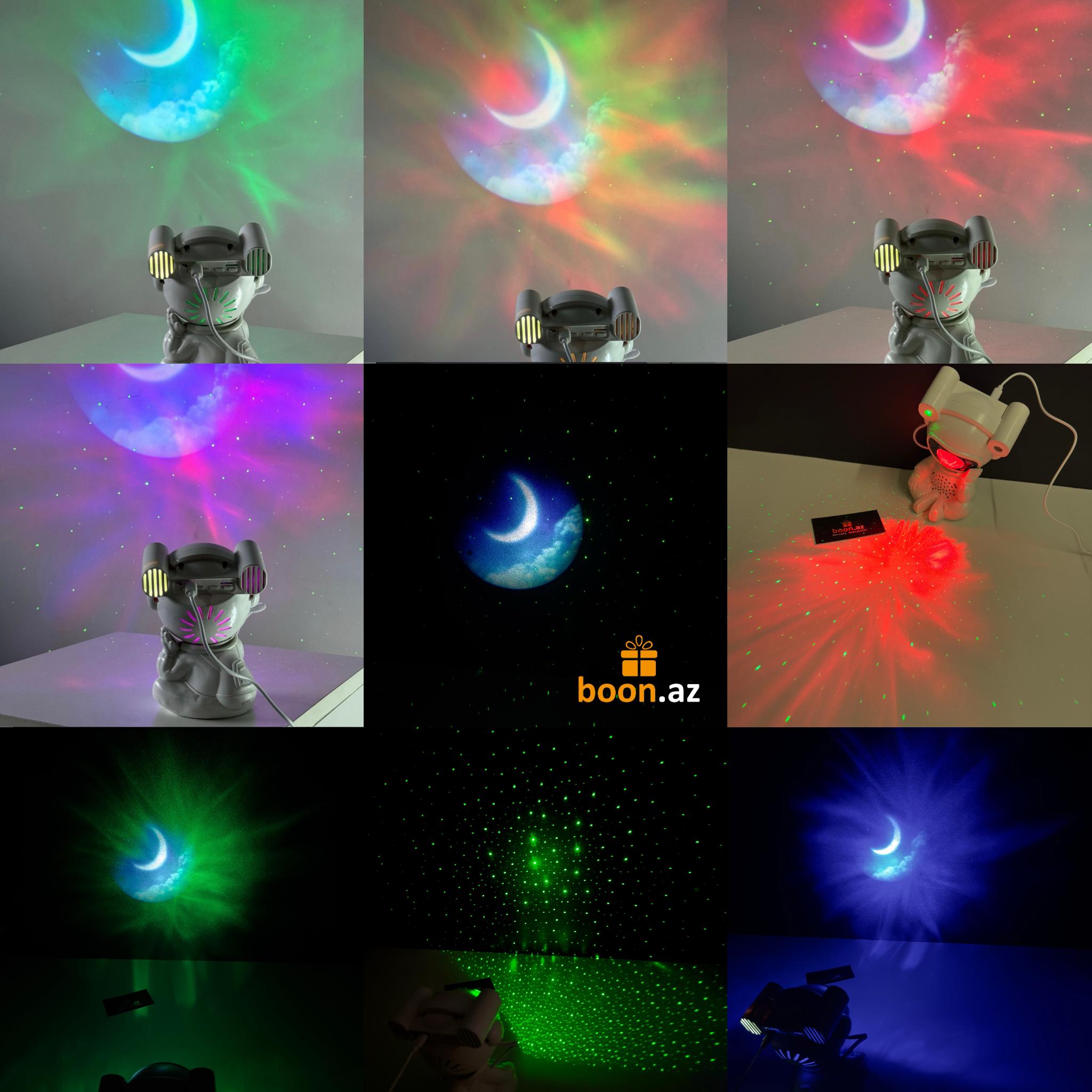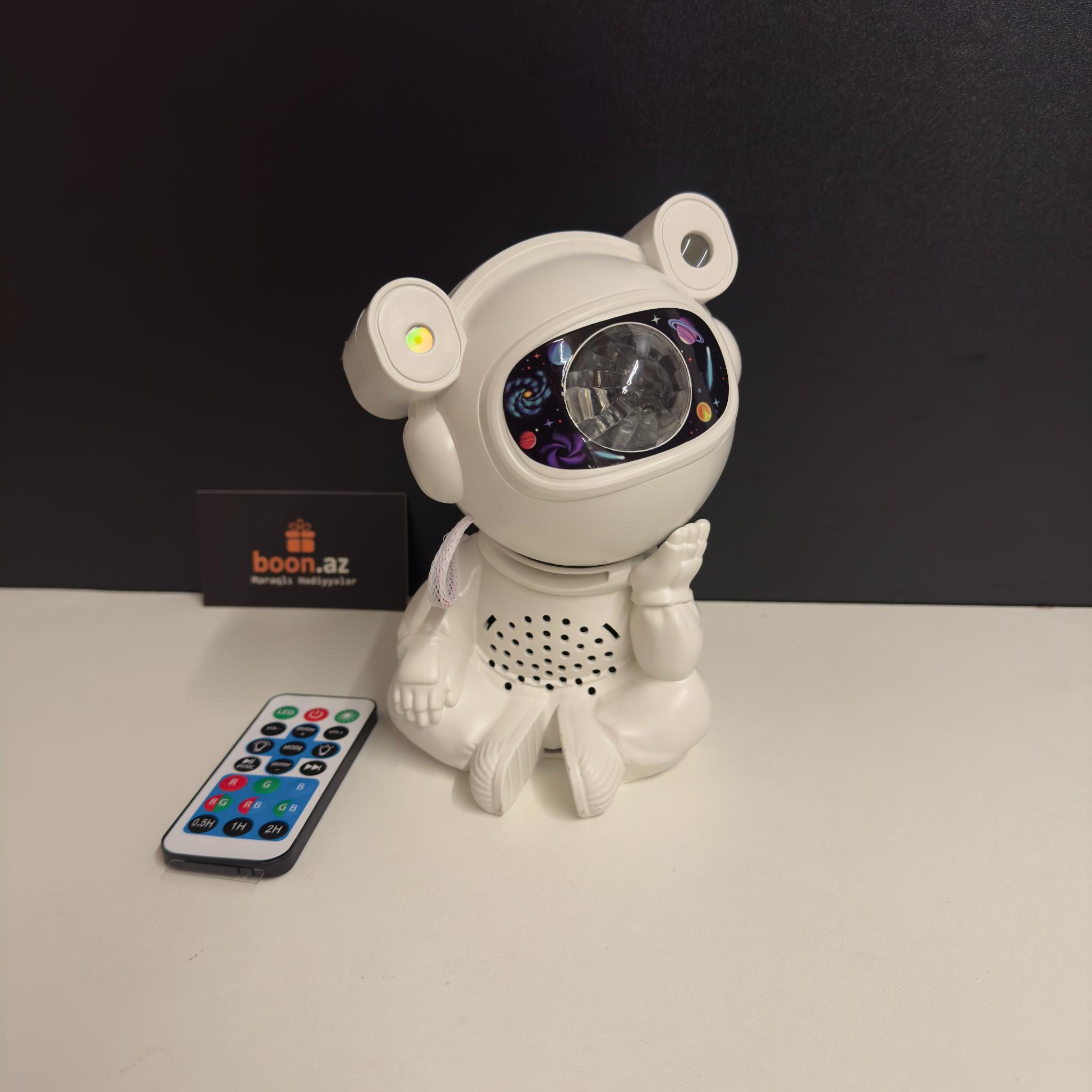Создайте в комнате атмосферу космического спокойствия с многофункциональным проектором в виде милого астро-медвежонка. Устройство проецирует на потолок яркие неоновые эффекты, звёзды, луну и туманности, наполняя пространство мягким светом и создавая идеальные условия для отдыха, сна или уютных вечеров.