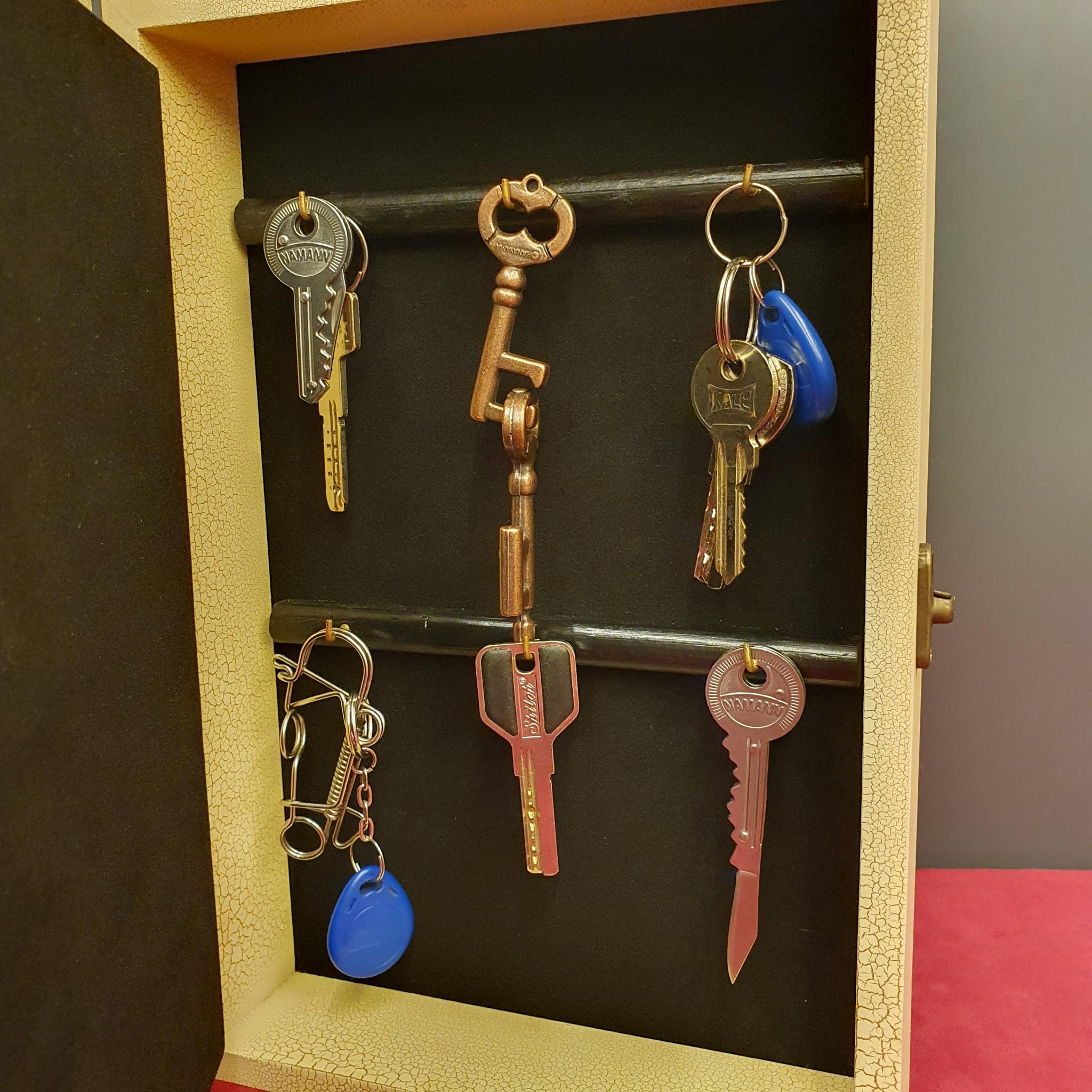 Ключница "Рыбалка" обычно имеет несколько крючков или отделений, предназначенных для подвешивания ключей. Эти крючки обычно выполнены из прочного металла, чтобы выдерживать вес ключей и обеспечивать их безопасное хранение. Количество кручков 6.