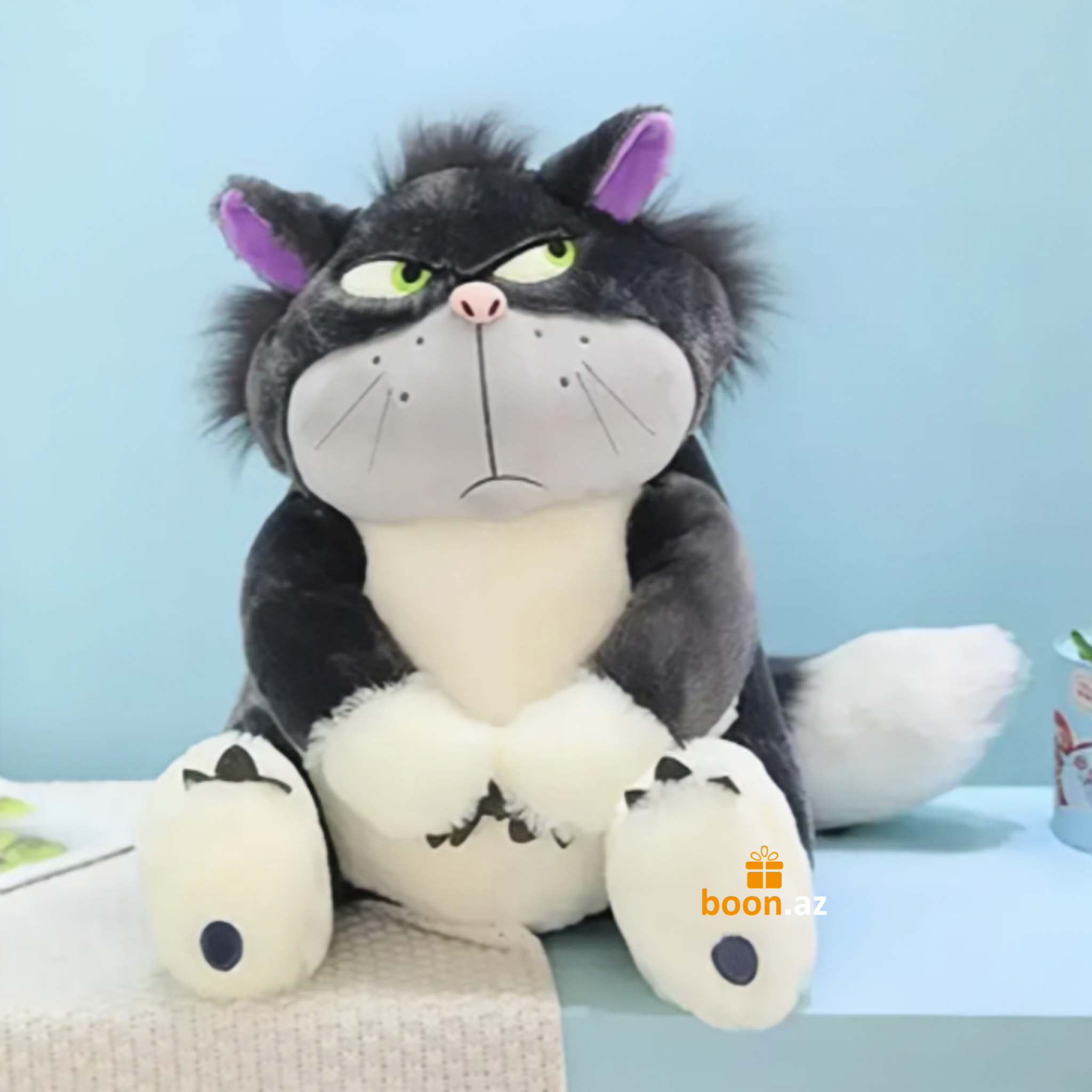Большой и невероятно уютный плюшевый кот с забавным «недовольным» выражением мордочки станет ярким акцентом в любой комнате и идеальным подарком для любителей необычных игрушек.