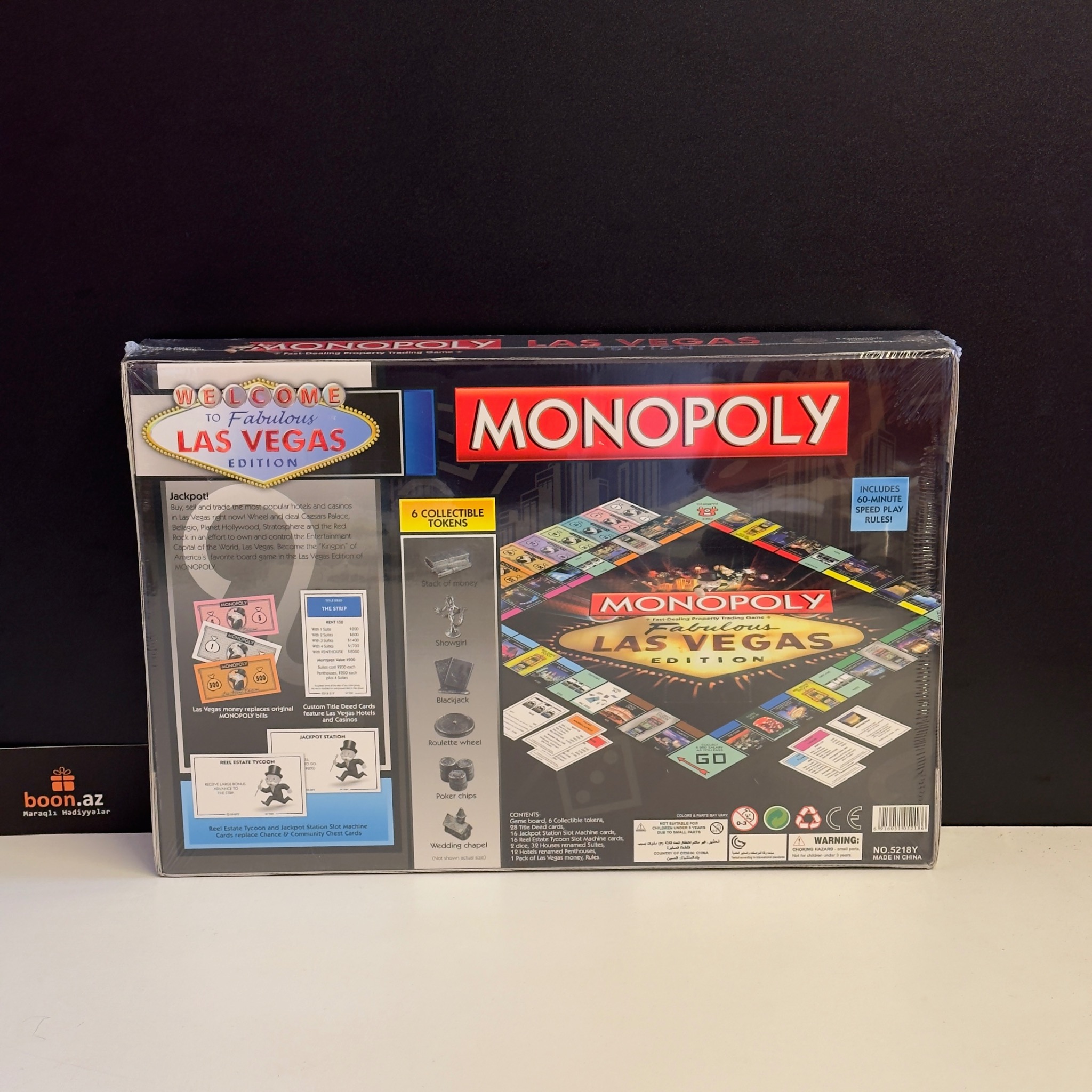 Играйте ради максимальной фантазии об успехе и богатстве в стиле Лас-Вегаса. Вам понравятся невероятные отели-казино, такие как Caesars Palace, Mandalay Bay, MGM Grand и The Desert Inn. Полностью черная игровая доска MONOPOLY, подчеркивающая весь ночной блеск и гламур Вегаса. Поставляется с красными кубиками Вегаса, персонализированными оловянными жетонами (карты блэкджека, свадебная часовня, колесо рулетки, фишки для покера, игровой автомат, танцовщица), апартаменты и пентхаусы, а также карты слотов и блэкджека.
