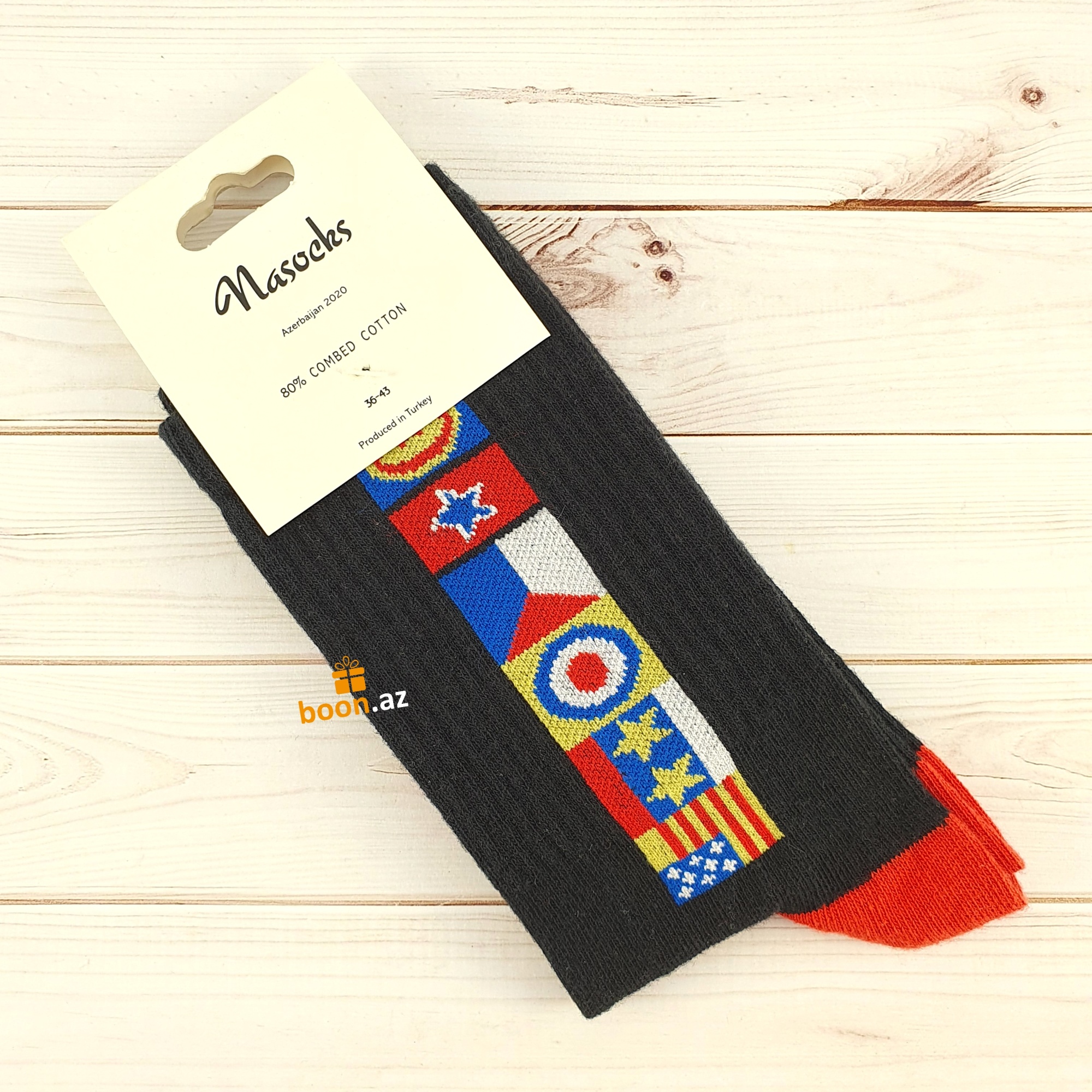 Носки с принтом флажков - это модные носки, на которых изображены флажки различных стран и разноцветные геометрические узоры, напоминающие флажки. Этот дизайн является ярким и разнообразным, отражая различные флаги разных национальностей или абстрактные графические элементы, которые ассоциируются с флажками. Носки с принтом флажков обычно являются стильным аксессуаром, который добавляет оригинальности и яркости к повседневному образу. Они могут быть использованы как самостоятельный элемент одежды или же дополнить общий стиль, создавая интересный акцент в образе. Носки изготовлены из различных материалов, таких как хлопок, полиамид, эластан. Носки с принтом флажков могут быть популярны как у людей, увлеченных путешествиями и различными культурами, так и у тех, кто ценит яркие и оригинальные элементы в своем гардеробе.