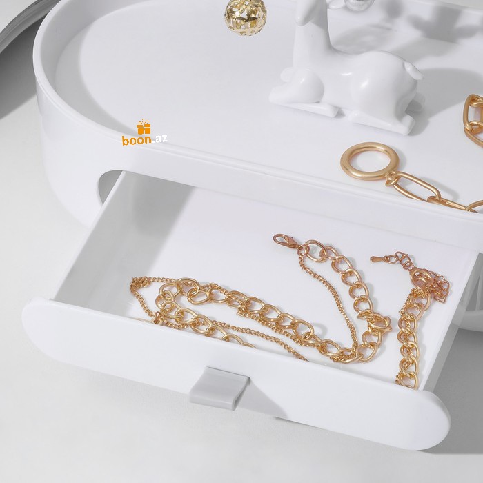 Шкатулка для украшений "Олень" – это полезное и практичное решение для организации аксессуаров и бижутерии. Главным его преимуществом является выдвижной ящик, который отлично подходит для хранения и распределения дополнительных предметов таких, как запонки, заколки для волос или наручные часы. Эргономичный и компактный дизайн подставки для колец позволяет разместить бижутерию на одном месте. Шкатулка оснащена разнообразными крючками и отверстиями для крепления сережек, что обеспечивает безопасное и удобное хранение украшений избегая потери или путаницы. Несмотря на свою компактность органайзер для бижутерии очень вместительный, поэтому каждый аксессуар и ювелирные изделия найдут свое место. Внешний вид вешалка для украшений имеет привлекательный минималистичный дизайн. Это делает ее универсальной и позволяет поставить в ванной комнате, спальне или гардеробной. Лаконичная форма подставки для сережек и колец придаст домашнему интерьеру изысканный вид. Таким образом декоративная подставка для украшений станет прекрасным акцентом на комоде, прикроватной тумбе или комнате.
