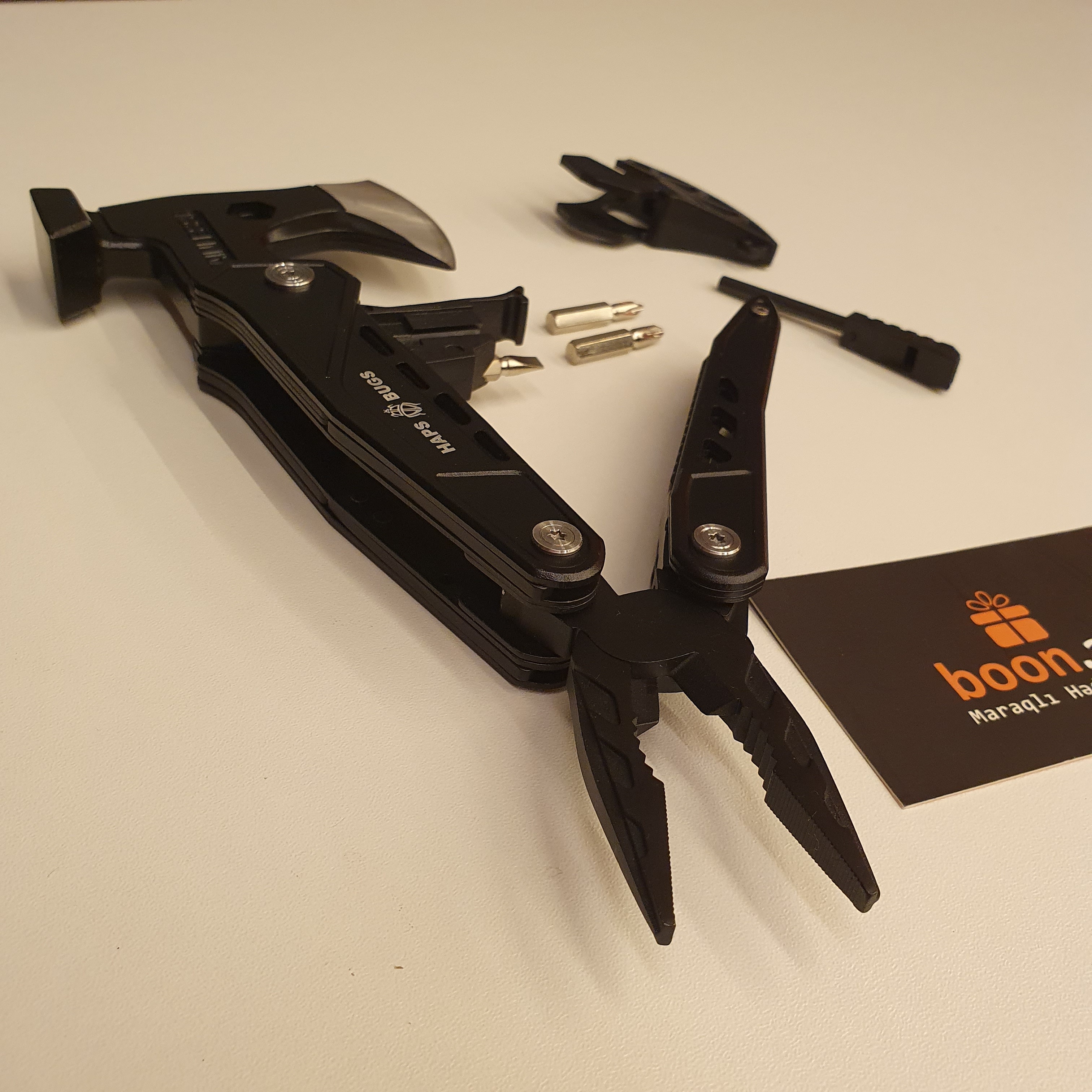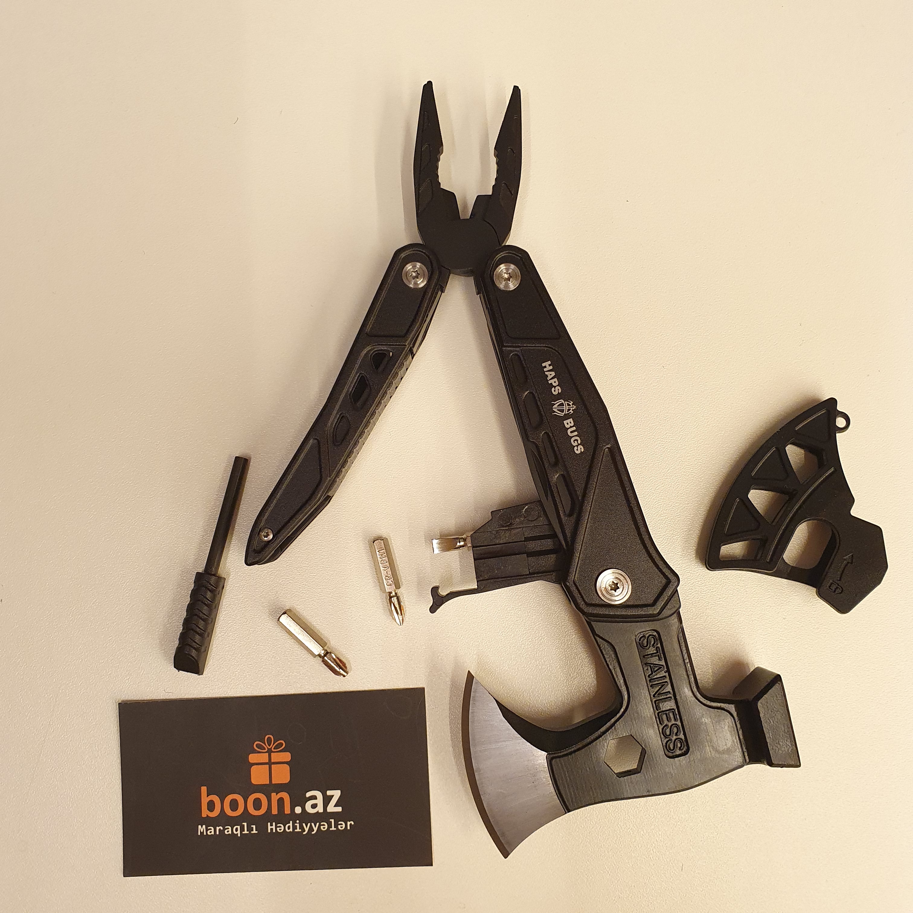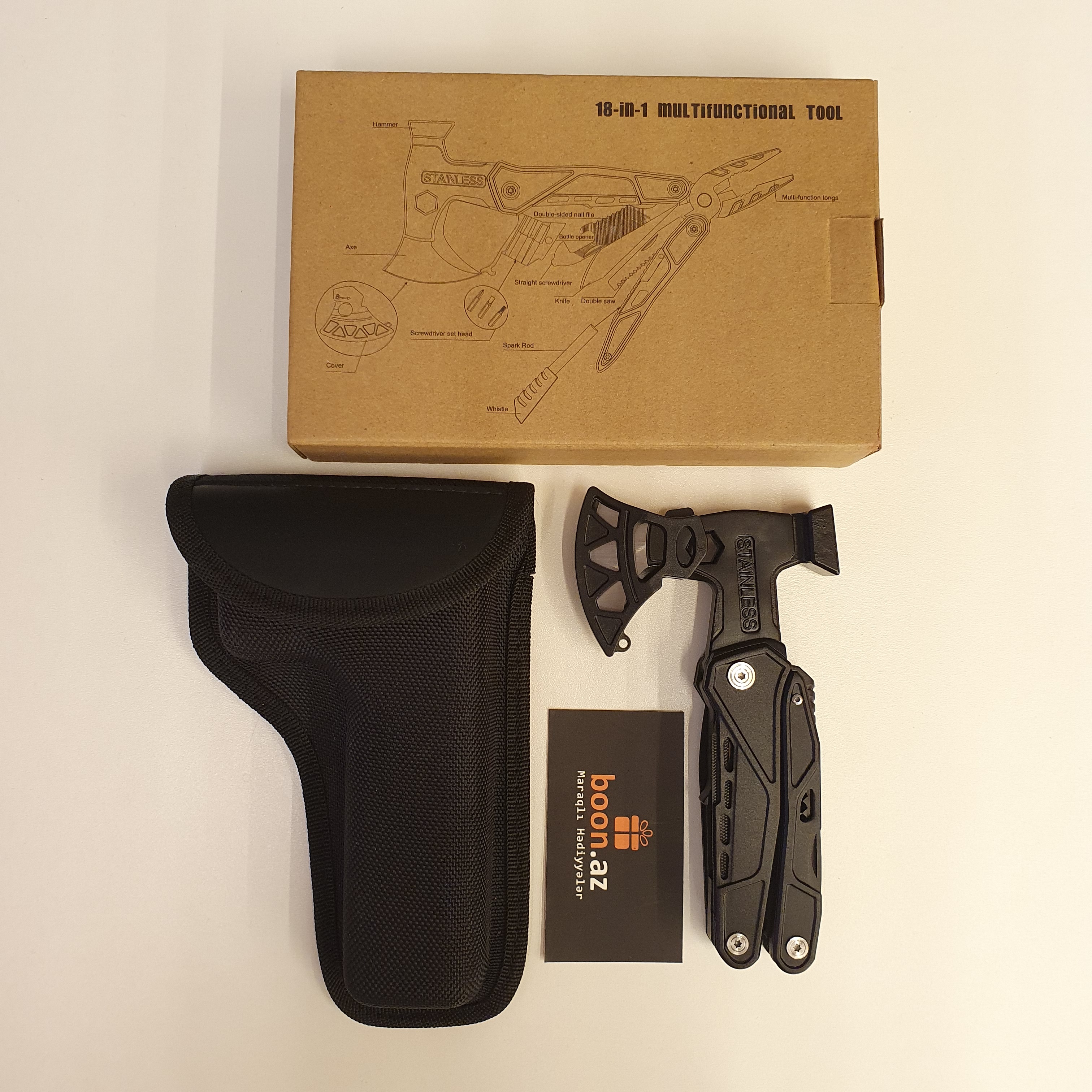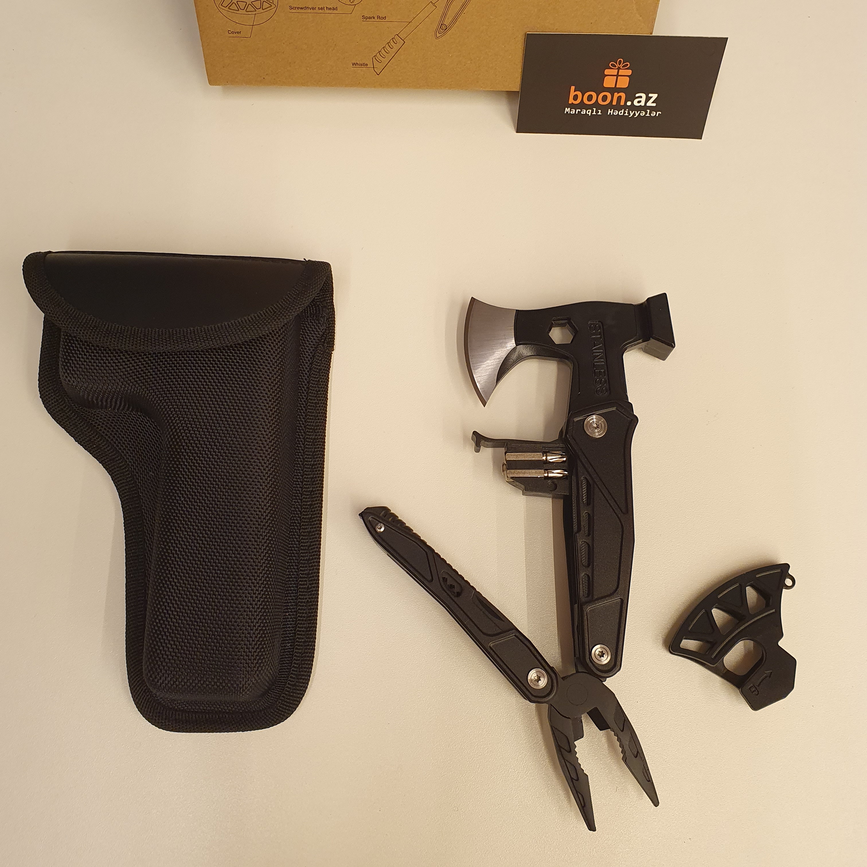 Универсальный мультитул топор-молоток включает в себя плоскогубцы, пилу и острый нож. Напильник и три отвертки - плоская (щелевая), крестовые (3 биты). Маленький консервный нож, открывашку для бутылок. Огниво и свисток. Магнитный битодержатель позволит сохранить ваши биты в целости и не потерять их. Рукоятка топора походного изготовлена из крашенного алюминия, а эргономической форма ручки идеальна для удобного и безопасного удержания в процессе работы. Топор подойдет для туризма и походов. Мультитул туристический станет незаменимым помощником во время охоты и рыбалки. Лучший помощник для работы в саду, на даче и любых бытовых нужд. Мультитул универсальный поможет при срочном ремонте автомобиля. Миниатюрный топорик с плоскогубцами можно легко разместить в рюкзаке с другими аксессуарами, мультитул не займет много места, но выручит в походе не один раз. Мультитул имеет стильный дизайн, практичен. В подарок в комплект входит чехол - сумка для удобства транспортировки, прикрепления к ремню на пояс и безопасности при ношении снаряжения. Так же безопасность носки топорика универсального обеспечивает предохранительный бокс для лезвия. Военный мультиинструмент с легкостью можно разместить в подсумок, бардачок авто или велосипеда или просто положить в ящик с инструментами для машины. Мультитул универсальный топор-молот с плоскогубцами станет отличным подарком для настоящих мужчин на Новый год, 23 февраля и день рождения. Топор для рыбалки, охоты идеально подойдет любителям этих видов развлечений. Так же раскладной топор будет незаменим на кухне во время рубки мяса и костей. Мультитул тактический относится к категории подарки мужчинам, сувениры и экипировка. Можно использовать как ледоруб, стеклобой и стропорез в экстремальных ситуациях. Преподнесите оригинальный подарок папе, мужу и брату. Любимому мужчине, дедушке и сыну. Коллеге, деду и охотнику, пожарному. Упаковано в коробку.