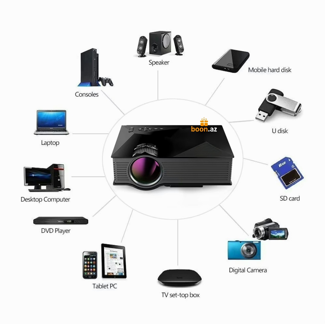 Максимальное разрешение: 1080 P для дисплея 34 ~ 130 дюймов в пределах 1 ~ 3 м обеспечивает приятные визуальные впечатления.