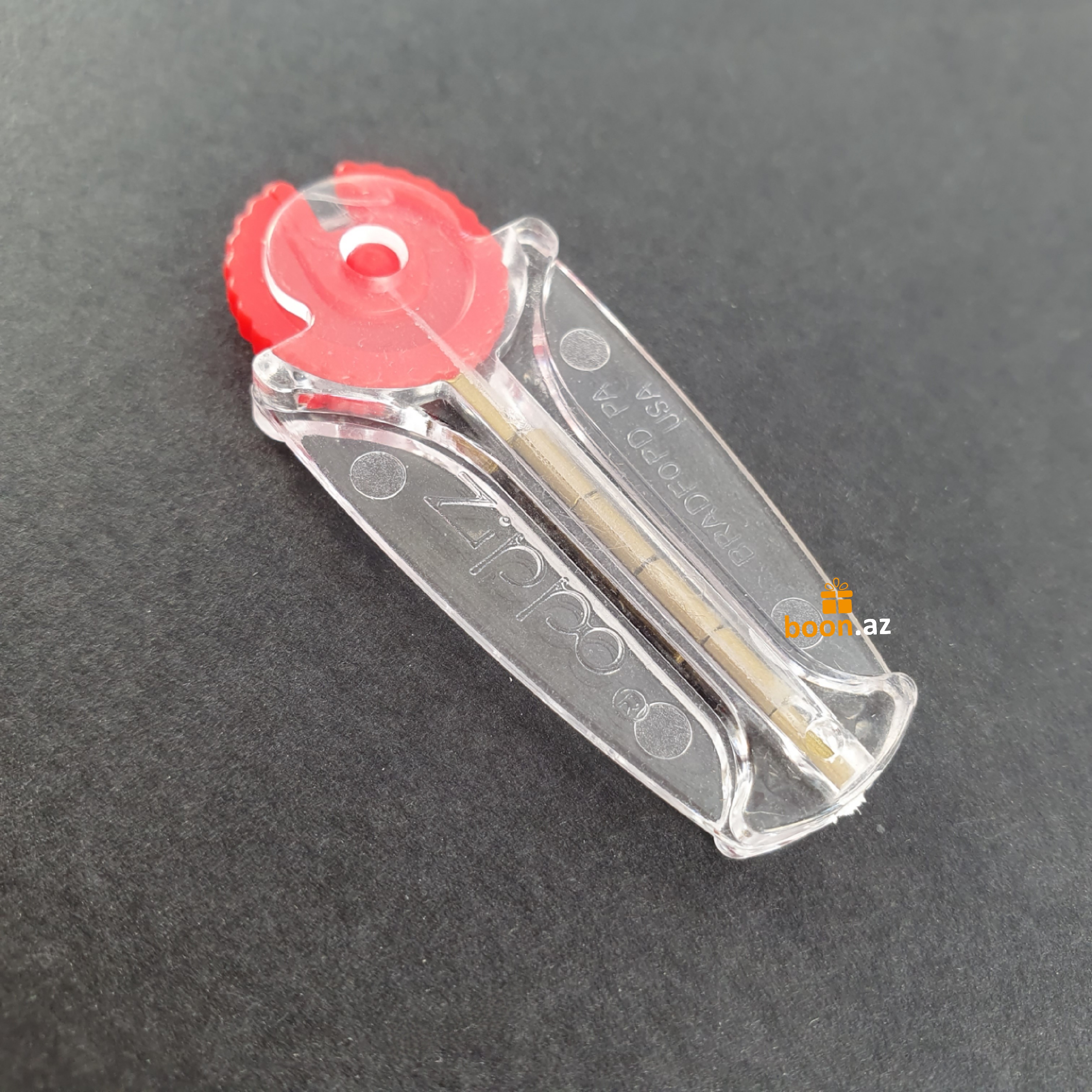 Прозрачный пластиковый пенал имеет в запасе 6 кремней. Кремень это особый сплав, который при трении высекает искру и со временем стачивается. При каждодневном использовании одного кремня хватает приблизительно на 3 - 4 недели. Если пропала искра или колесико зажигалки не прокручивается, следует заменить кремень.