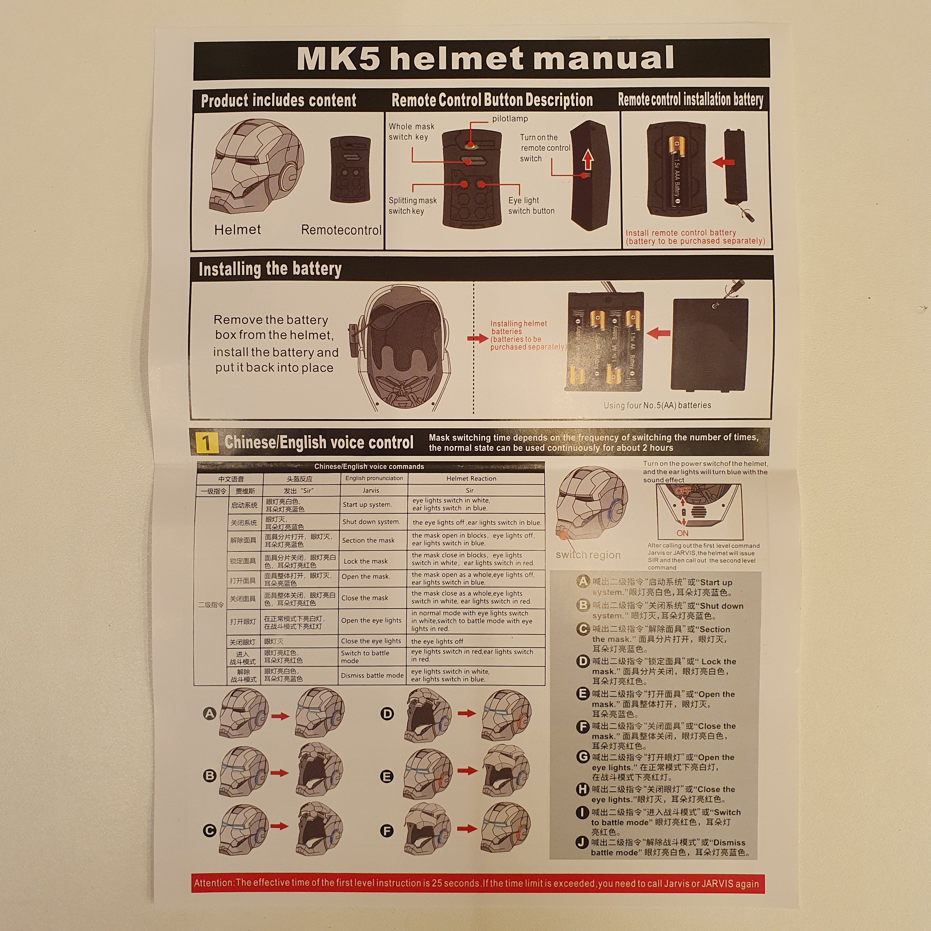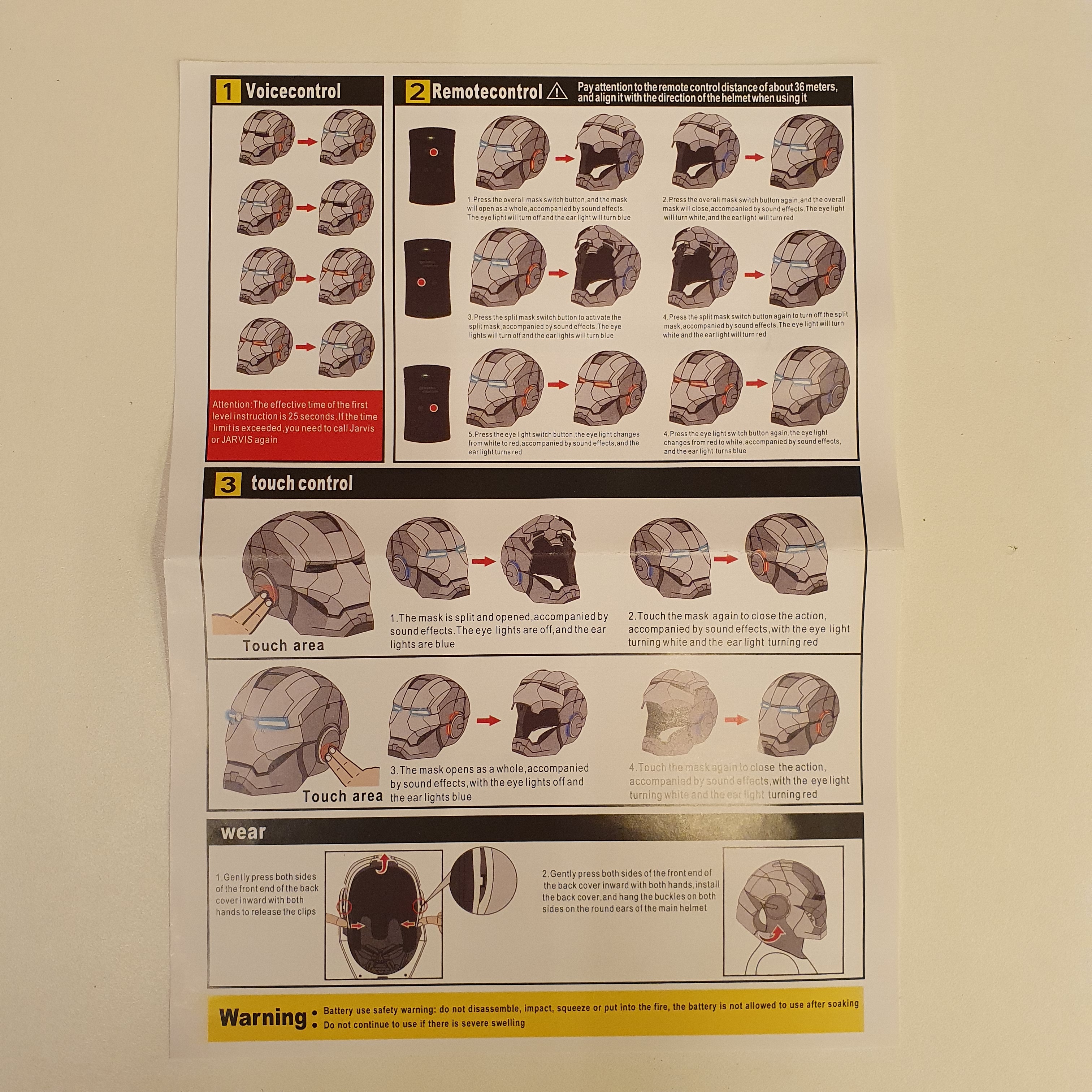 Функции: глазные огни, приветствие от Джарвиса, открытие и закрытие лицевых пластин, металлический звук, голосовое управление