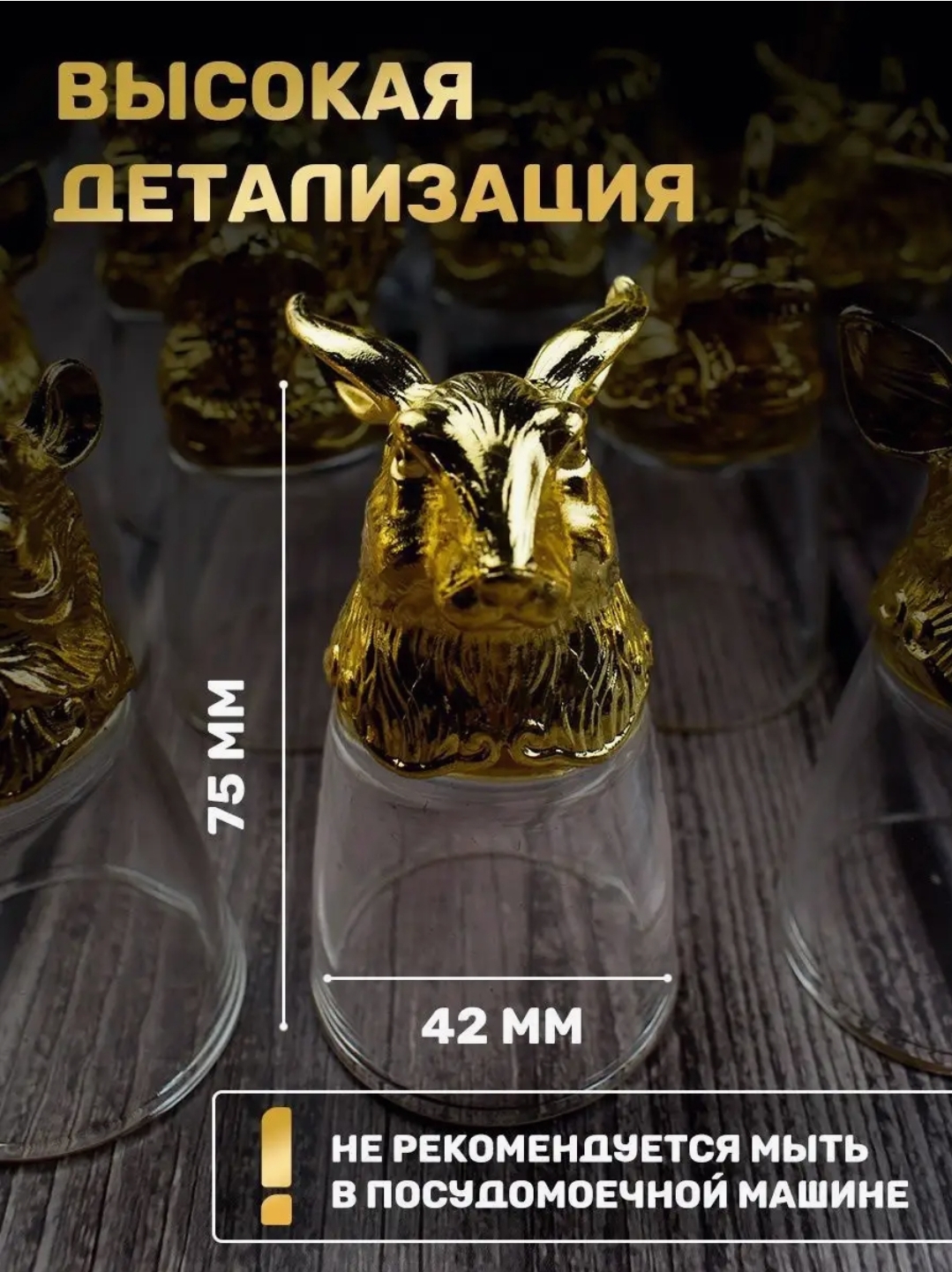 Набор рюмок перевертышей это идеальный подарок для истинных ценителей необычных и оригинальных предметов декора! 12 стопок с необычным дизайном в виде животных станет креативным дополнением в сервировке праздничного стола дома или бара. Каждая стопка выполнена в форме различных животных - крысы, быка, тигра и кролика. Так же вы найдете в наборе дракона, змею и лошадь. И конечно, козу, обезьяну и петуха, как и собаку и свинью. Изготовленный из высококачественного прочного стекла в сочетании с латунью и обладает изящным внешним видом. Вместительность объемом 30 мл отлично подойдут для многих алкогольных напитков. Комплект рюмочек на ножках или подарочный набор мужчине это интересная идея для символического подарка или презента на день рождения директору, начальнику, коллеге, шефу, руководителю мужчине или женщине. Красивый и оригинальный набор шотов можно дарить без повода а так же на 23 февраля, юбилей, годовщины свадьбы, нового года, новоселья или другого праздника – эти декоративные стопочки для алкоголя порадуют их обладателей. Не упустите возможность сделать прикольный сюрприз и удивить любимого мужа, папу, лучшего друга, брата, дедушку или парня таким стильным и практичным мужским сувениром в подарочной упаковке! Подарите отцу, дяде, деду охотнику или рыбаку, друзьям радость и удовольствие, пополняя их уникальные коллекции.
