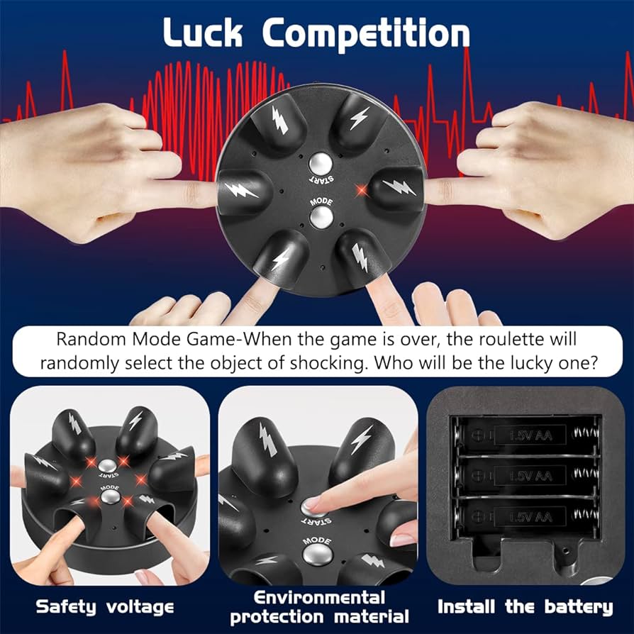 Настольная игра электрошокер, вы могли не раз видеть ее в тренда ТикТок. Развлечение как для двоих так и для небольшой компанией, сыграв в нашу настолку вы сможете подарить себе не только весёлое времяпрепровождение, но и настоящий прилив адреналина. В игре могут участвовать от 2 до 6 игроков, с помощью дополнительной кнопки вы можете менять кол-во игроков среди которых будет разыгрываться удар током. Безопасное напряжение, безвредное для человеческого организма, не влияет на здоровье человека, можно играть даже детям. Разряд тока не сильный, наоборот вызывает смех у участника за счет покалывания пальца. Игра идеально подходит для развлечения как в кругу семьи, так и в компании друзей. Принцип настольной игры рулетка: 6 отверстий для игроков. Игроки помещают в них пальцы, наживаете кнопку старт для запуска игры рулетки. Устройство воспроизводит игровой звук рулетки во время выбора игрока. Как только звук прекратится, один из игроков рандомно получает удар тока. Детская игра понравилась подросткам школьного возраста и студентам. Необычная игра для компании друзей - это лучший подарок, настолка для мальчиков и девочек. Соберите компанию и отправляйтесь в увлекательное путешествие по миру приколюх с электрошокером-рулеткой! Если вы думаете, что единственная алкогольная игра это бирпонг, то нет, наша настольная игра так же может скрасить ваш увлекательный вечер, проигравший пьет! Получите радость, веселье и незабываемые впечатления с этой интересной игрой! Веселая игра для мужчин и женщин. Работает от пальчиквых батареек АА х 3 шт., в комплекте не поставляются. Бери данную игру на отдых на природе, для пикника и на дачу к родителям. Особенно в школе, подросткам нравится игра - смешные прикольные веселые часы вам обеспечены. Можно взять собой даже в дорогу.