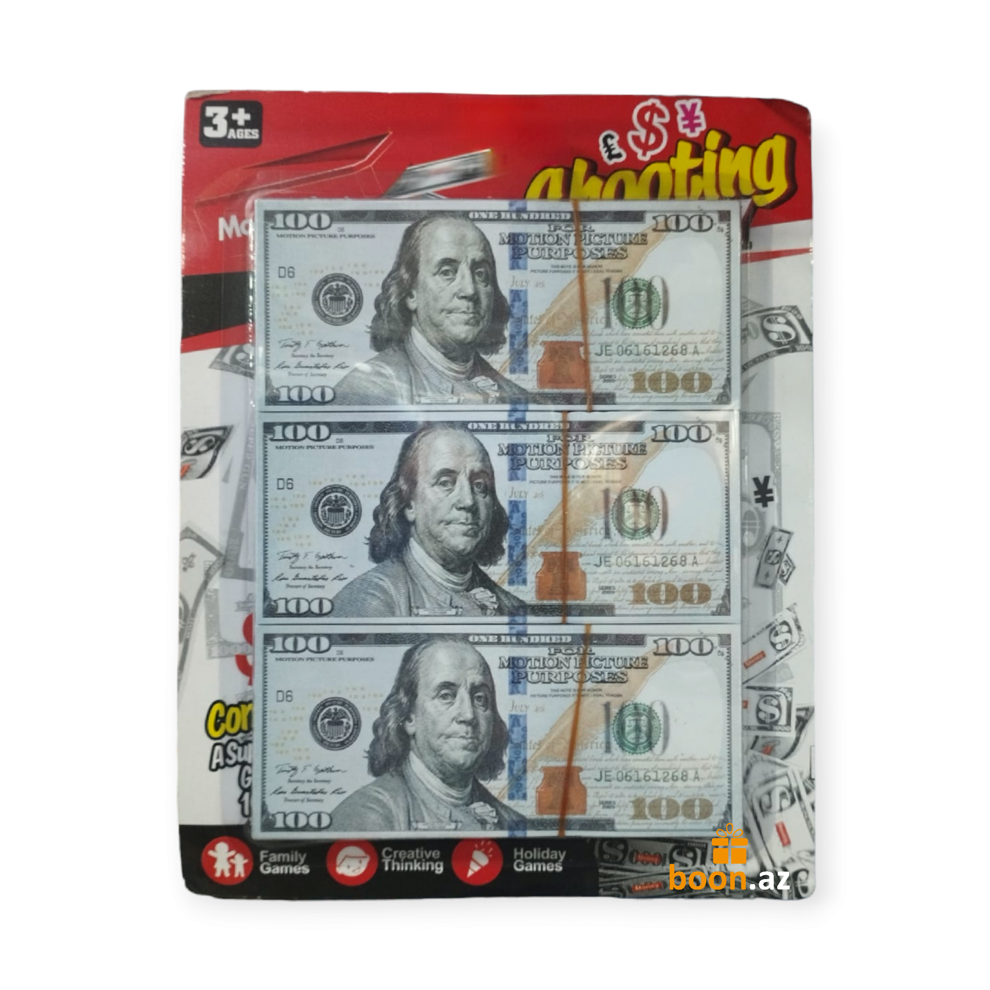 Три пачки, в каждой из которых по 100 купюр.