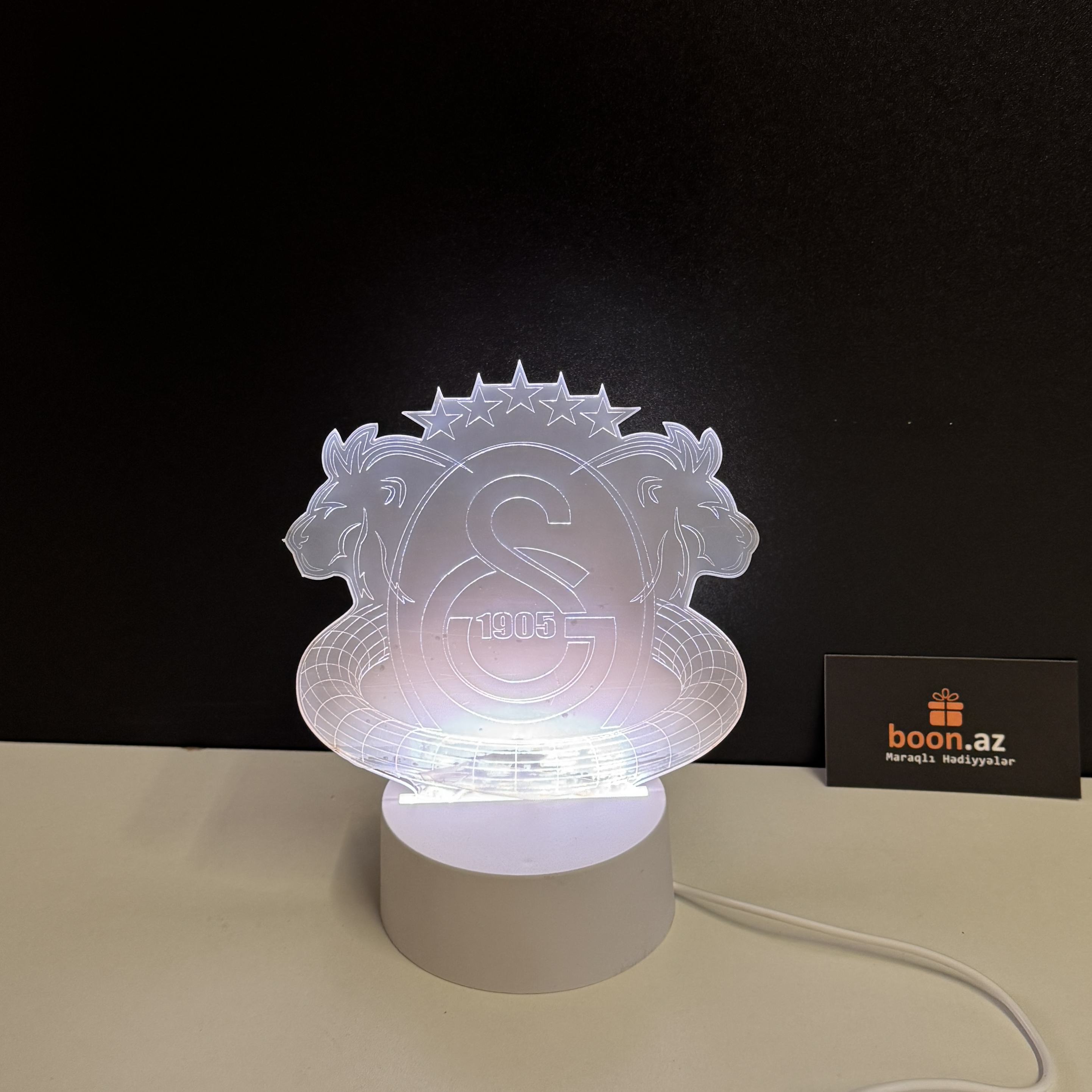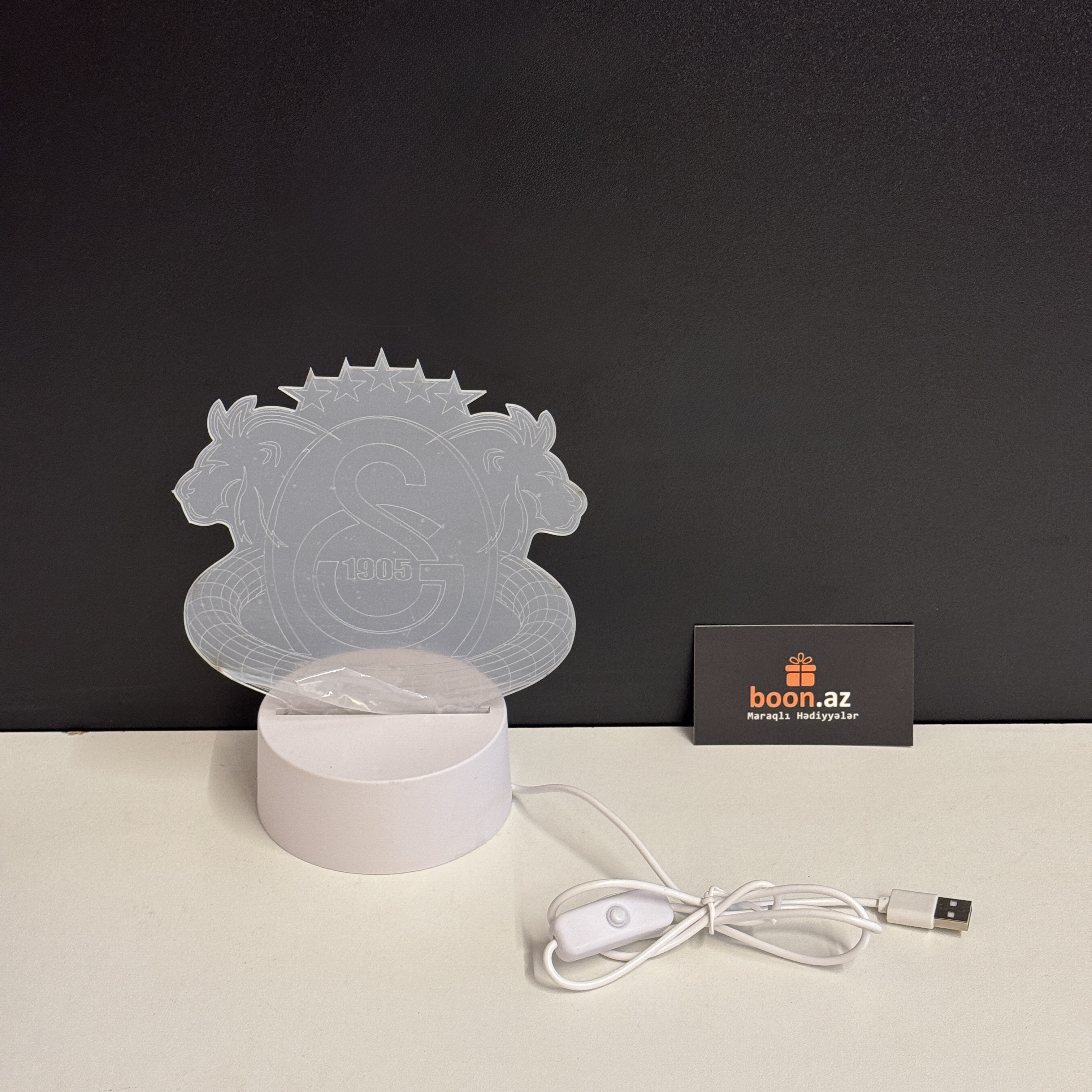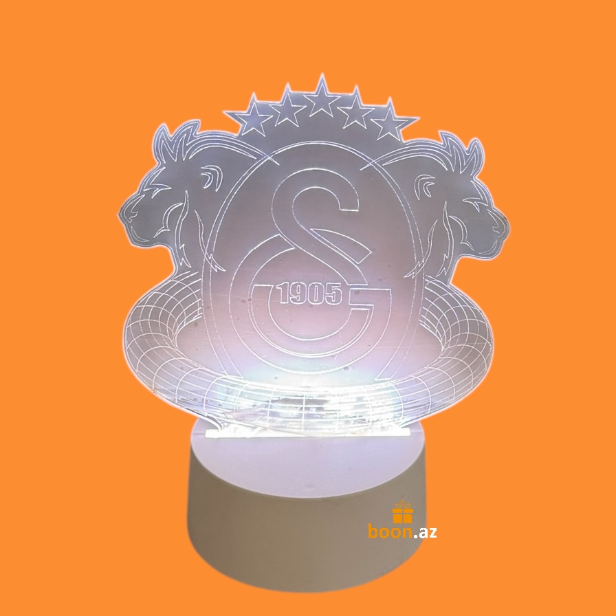 Настольная LED-лампа с акриловой панелью в форме логотипа футбольного клуба Galatasaray. Отлично подойдёт в качестве подарка для болельщиков или в качестве декоративного элемента для рабочего стола, полки или фан-зоны.