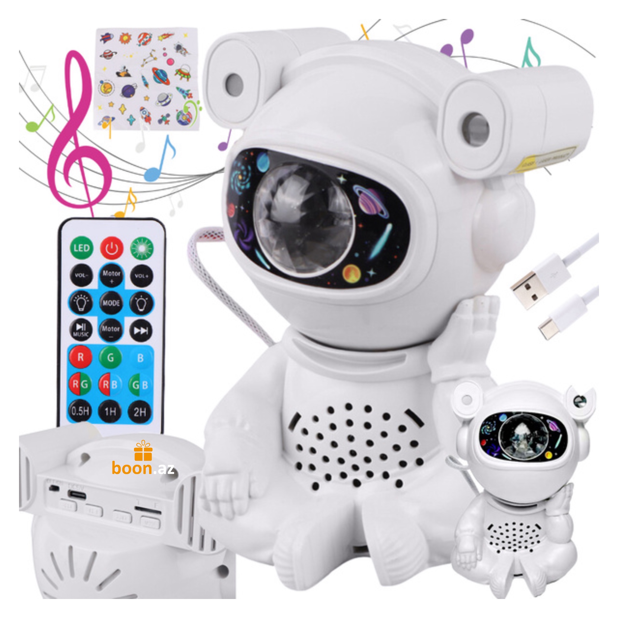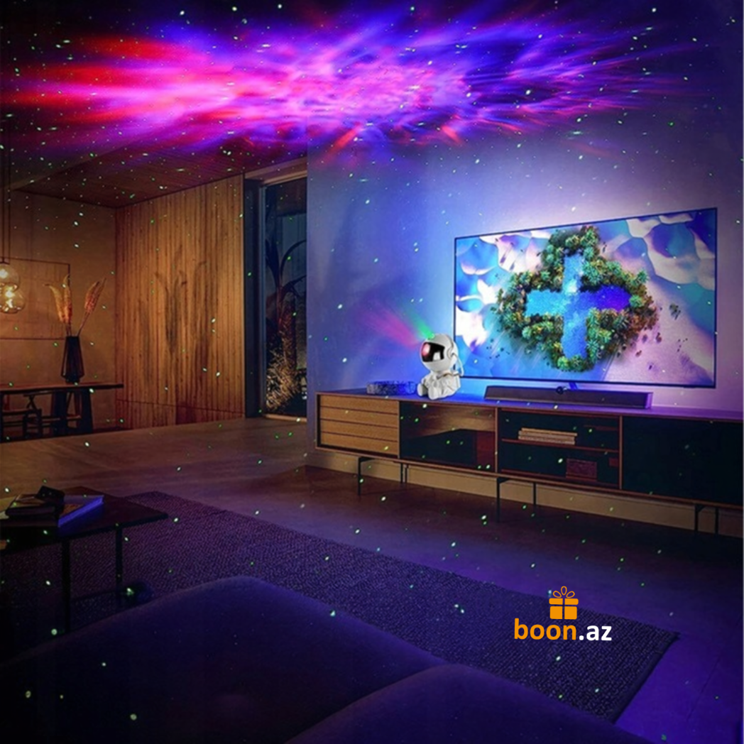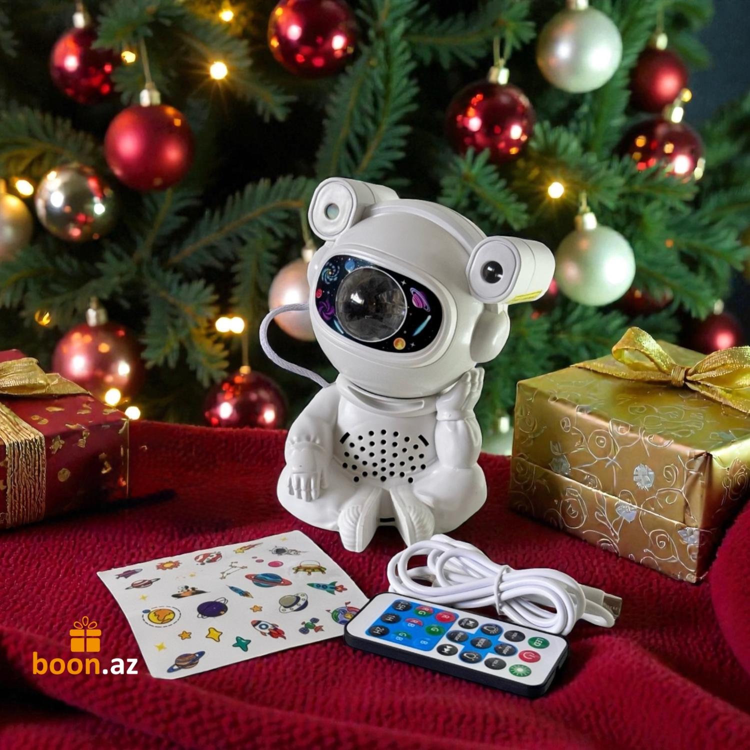 Создайте в комнате атмосферу космического спокойствия с многофункциональным проектором в виде милого астро-медвежонка. Устройство проецирует на потолок яркие неоновые эффекты, звёзды, луну и туманности, наполняя пространство мягким светом и создавая идеальные условия для отдыха, сна или уютных вечеров.