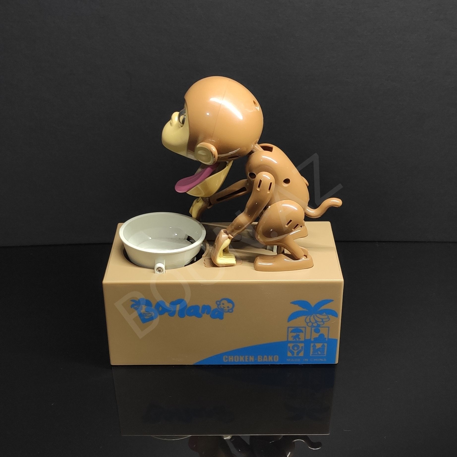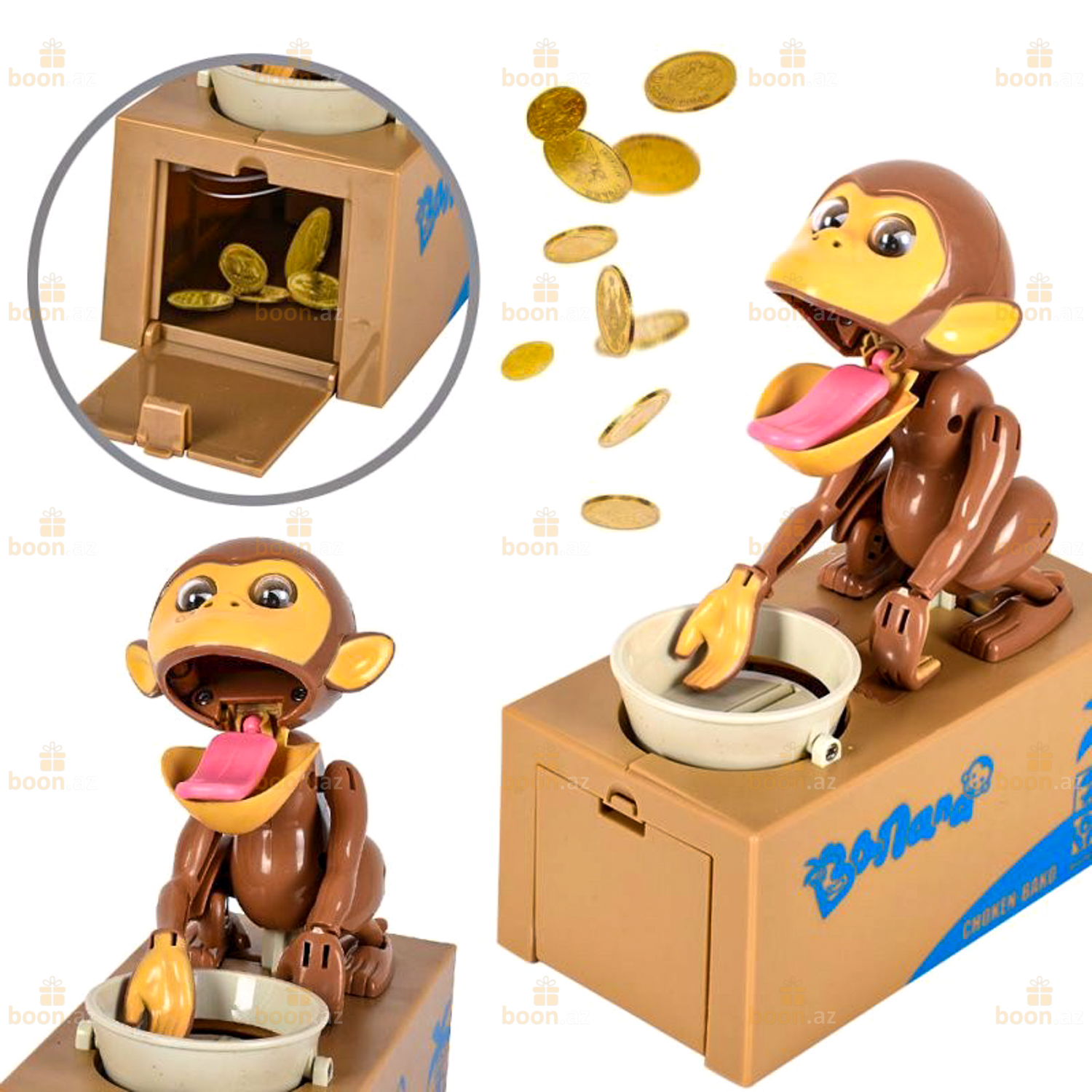 Монетка сразу же окажется в копилке, а обезьянка будет охранять ваши сбережения.
