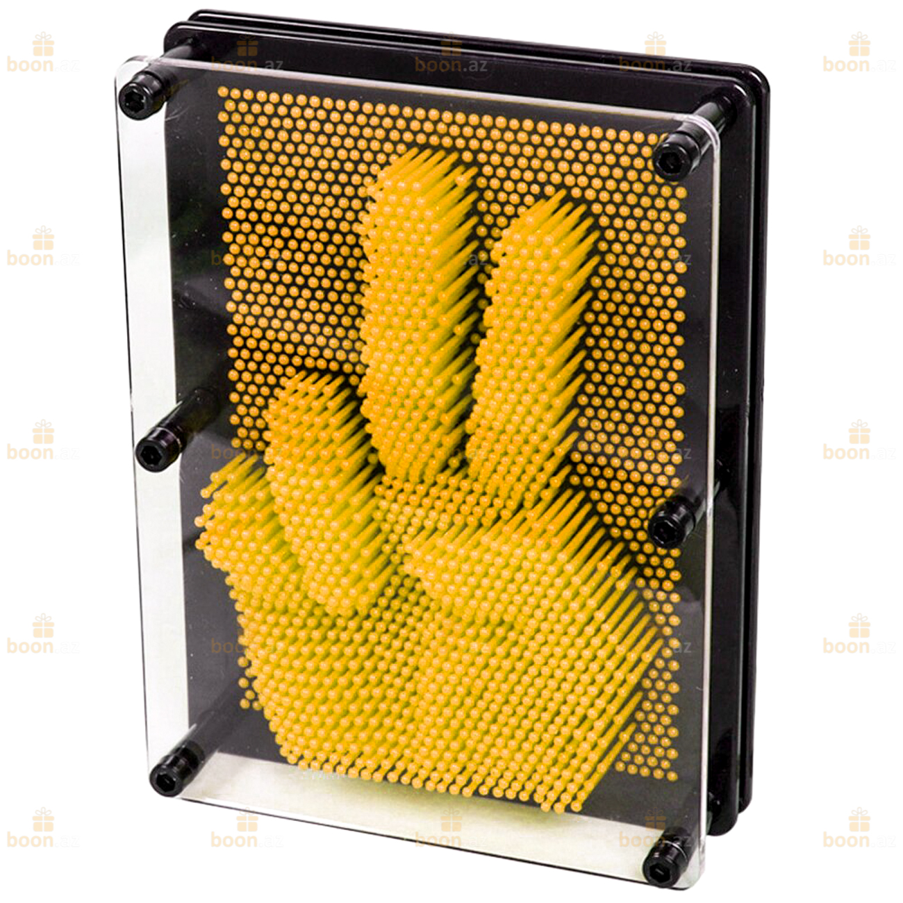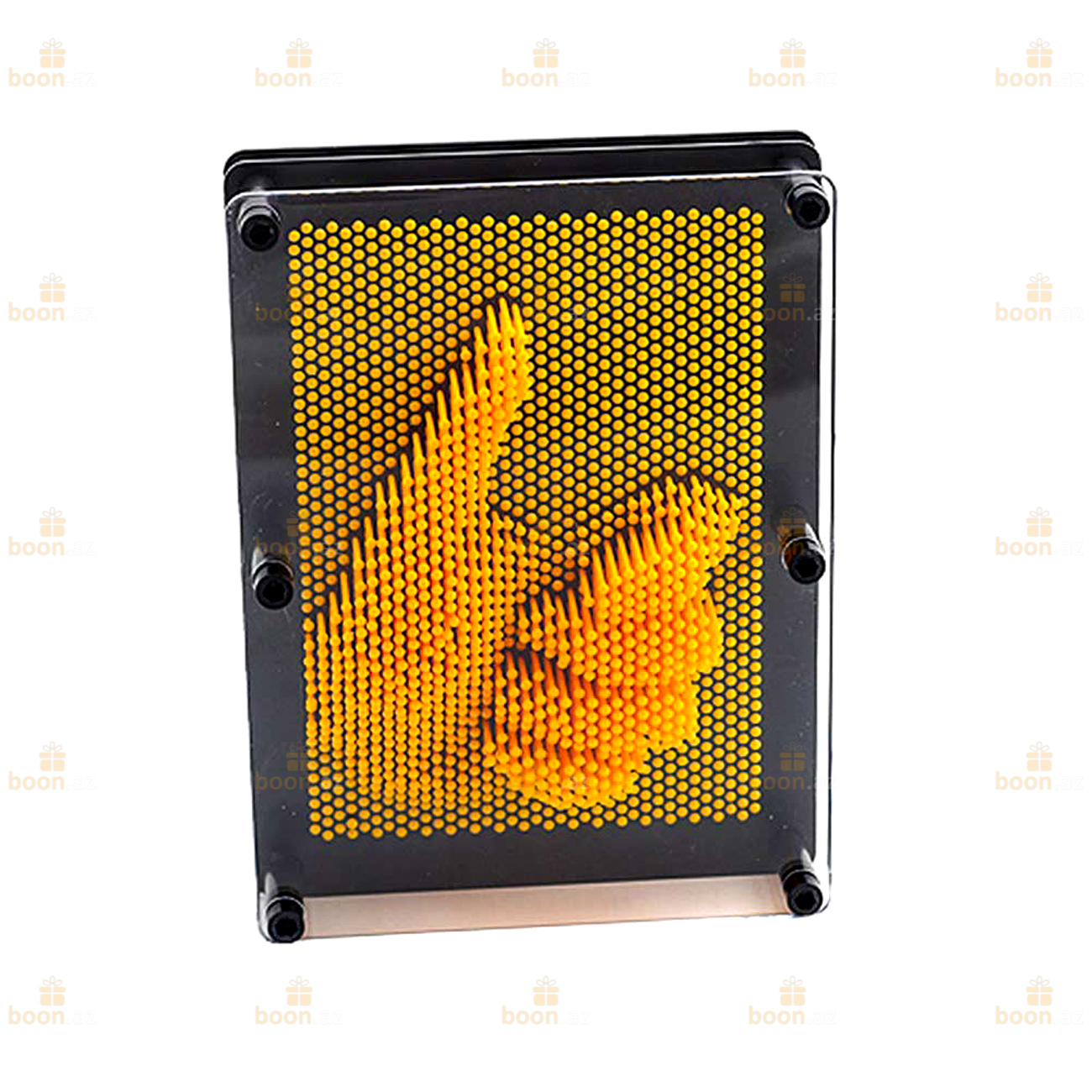 Изображайте настоящие шедевры, все, что придет в голову возможно с прикольной вещицей. Как же сделан пинарт скульптор? К пластине - основанию прикреплены много металлических или пластиковых гвоздиков, которые свободно перемешаются назад и вперед в отверстиях пластины. Таким образом, в тот момент, когда Вы прикладываете какой-то предмет к стержням с одной стороны, с другой появляется очертание этого предмета в формате 3D! Две пластины, между которыми закреплены стержни, позволяют отображать любые реальные или существующие пока только в Вашем воображении предметы.