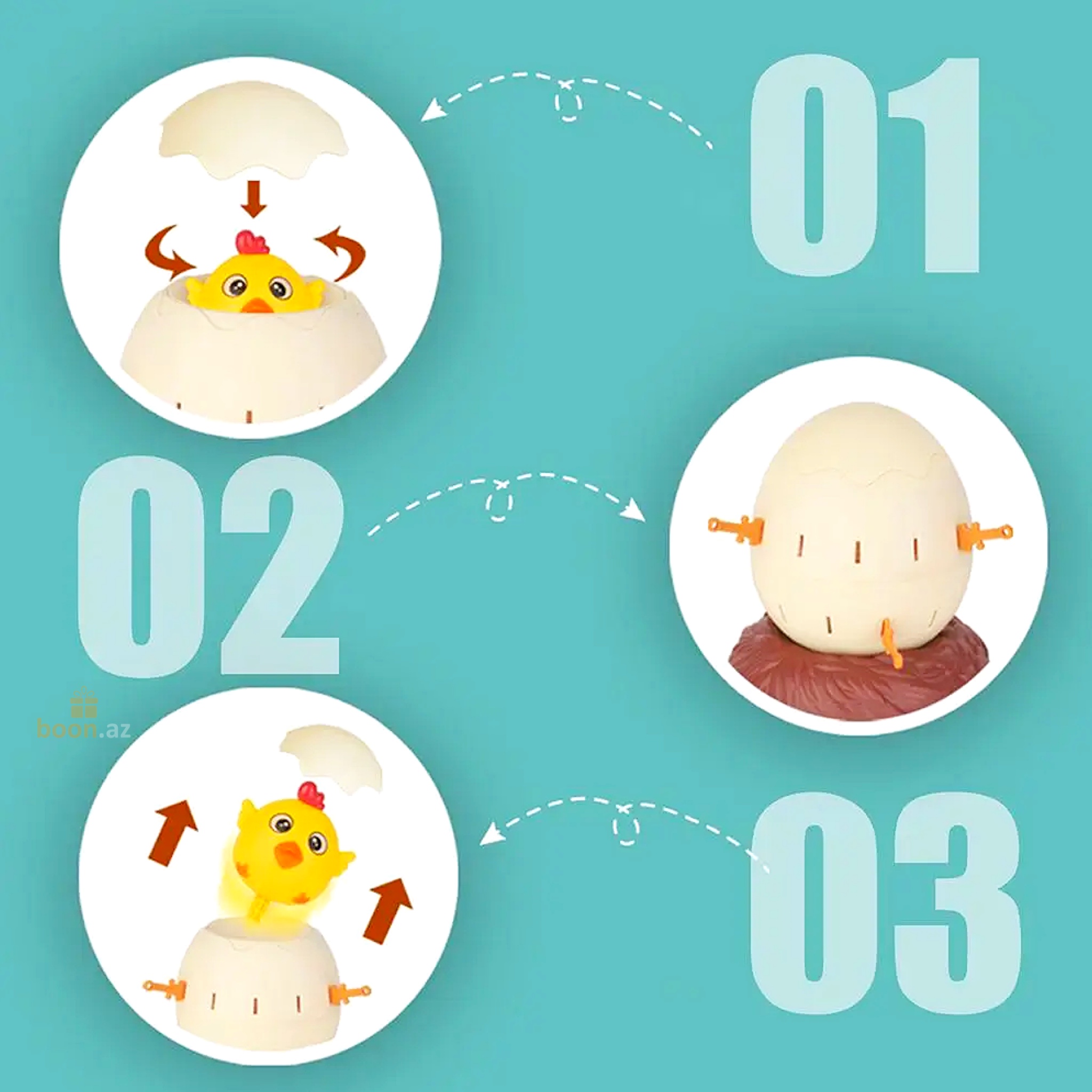 1. Нажмите Вниз по голове курицы, а затем поверните его влево и вправо в яйцо.