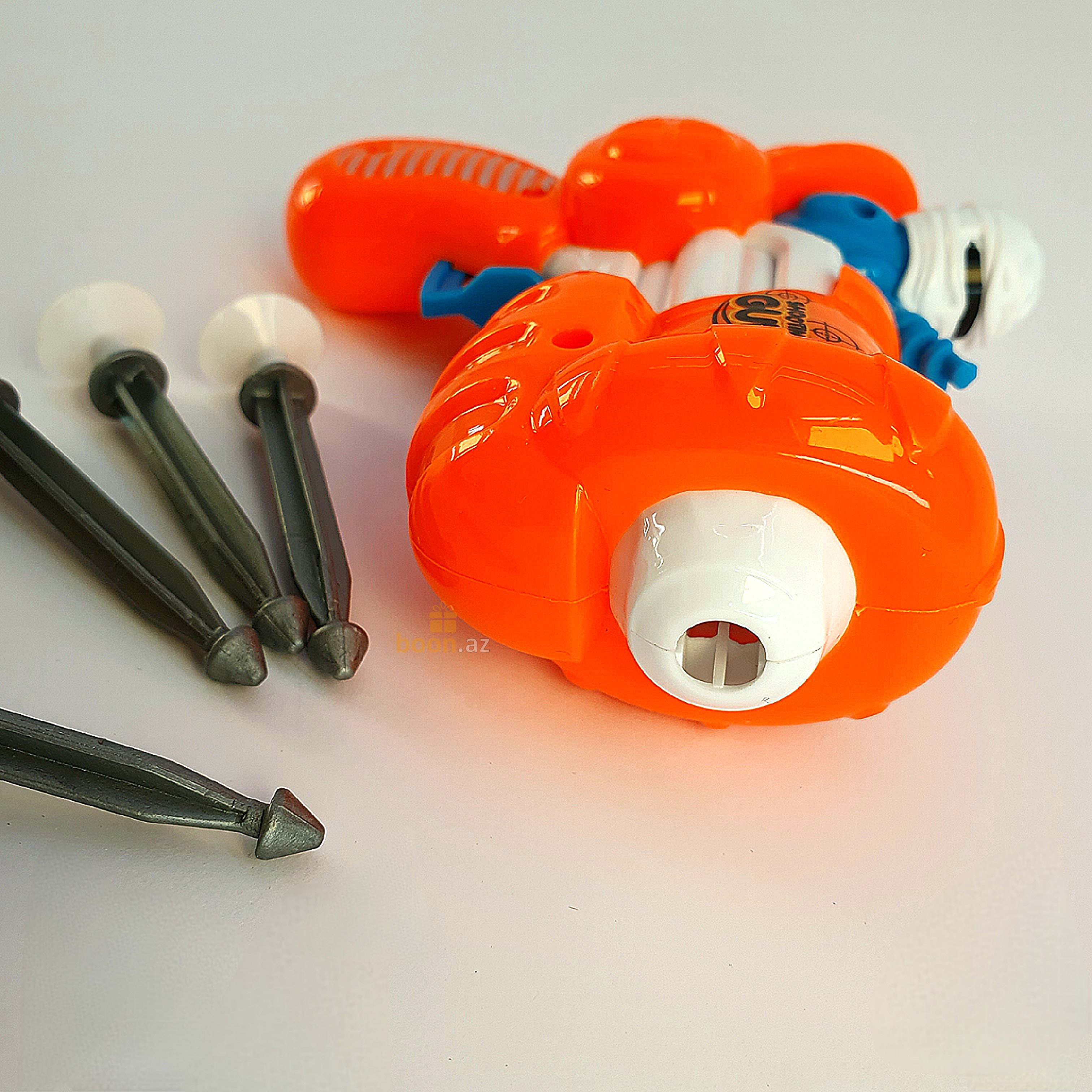 В комплект входит: пистолет и пули с присоской (4 штук).