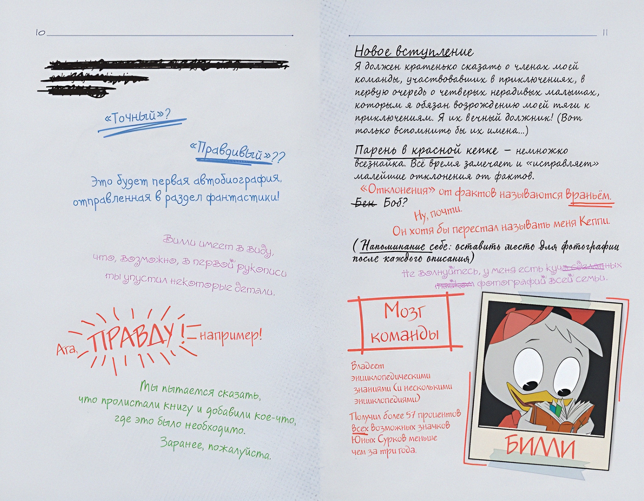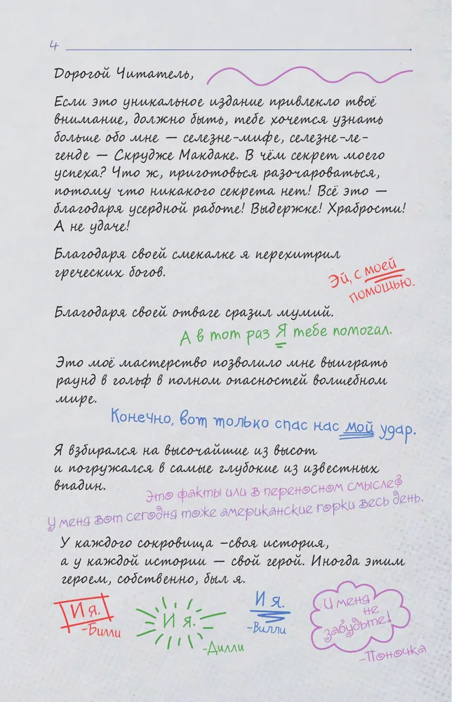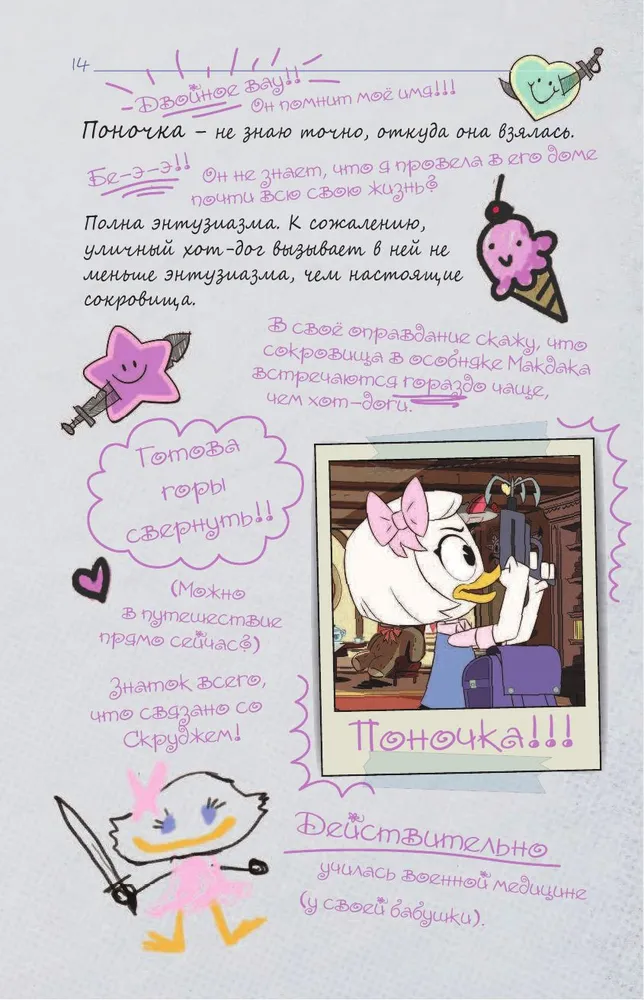 Пришло время переписать историю для новых "Утиных истоий". Специально издание с комметариями дорогих Скруджу племянников Билли, Вилли и Дилли, а также отважной Поночки. Что они видели, что слышали - им есть что сказать, - а мы послушаем и полистаем этот красочно оформленный дневник. Самых терпеливых читателей ждет в конце книги двусторонний постер - схема Уткоробота и портрет самого невероятного героя Дакбурга - Чёрного Плаща.
