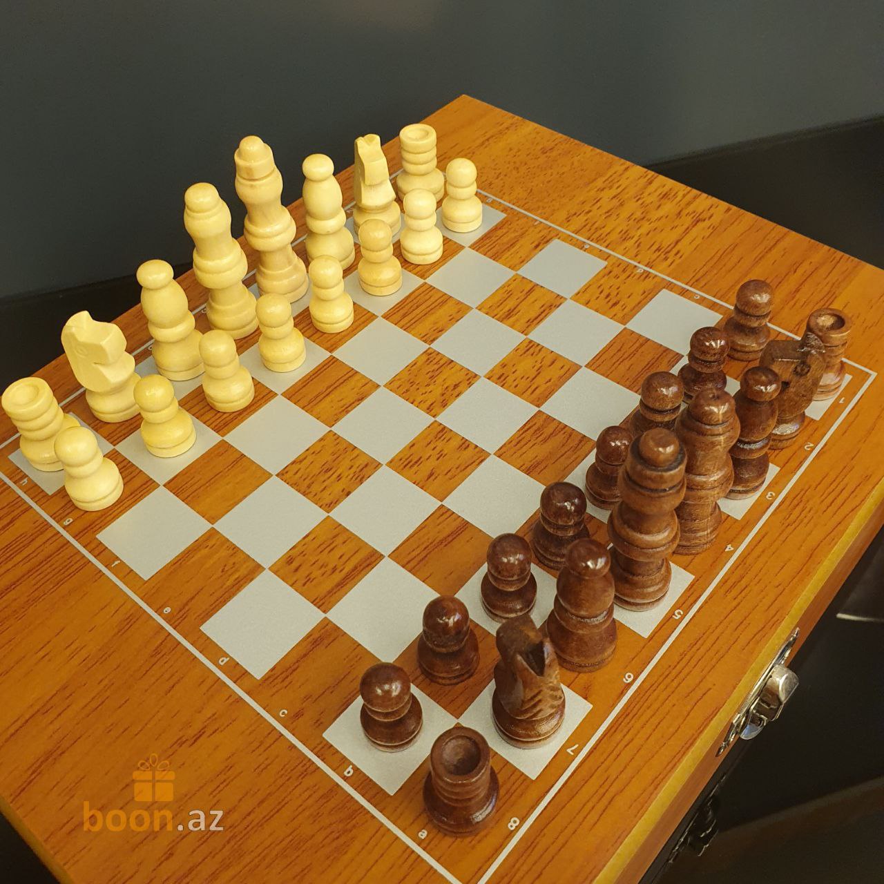 - Деревянная подарочная коробка с шахматной доской