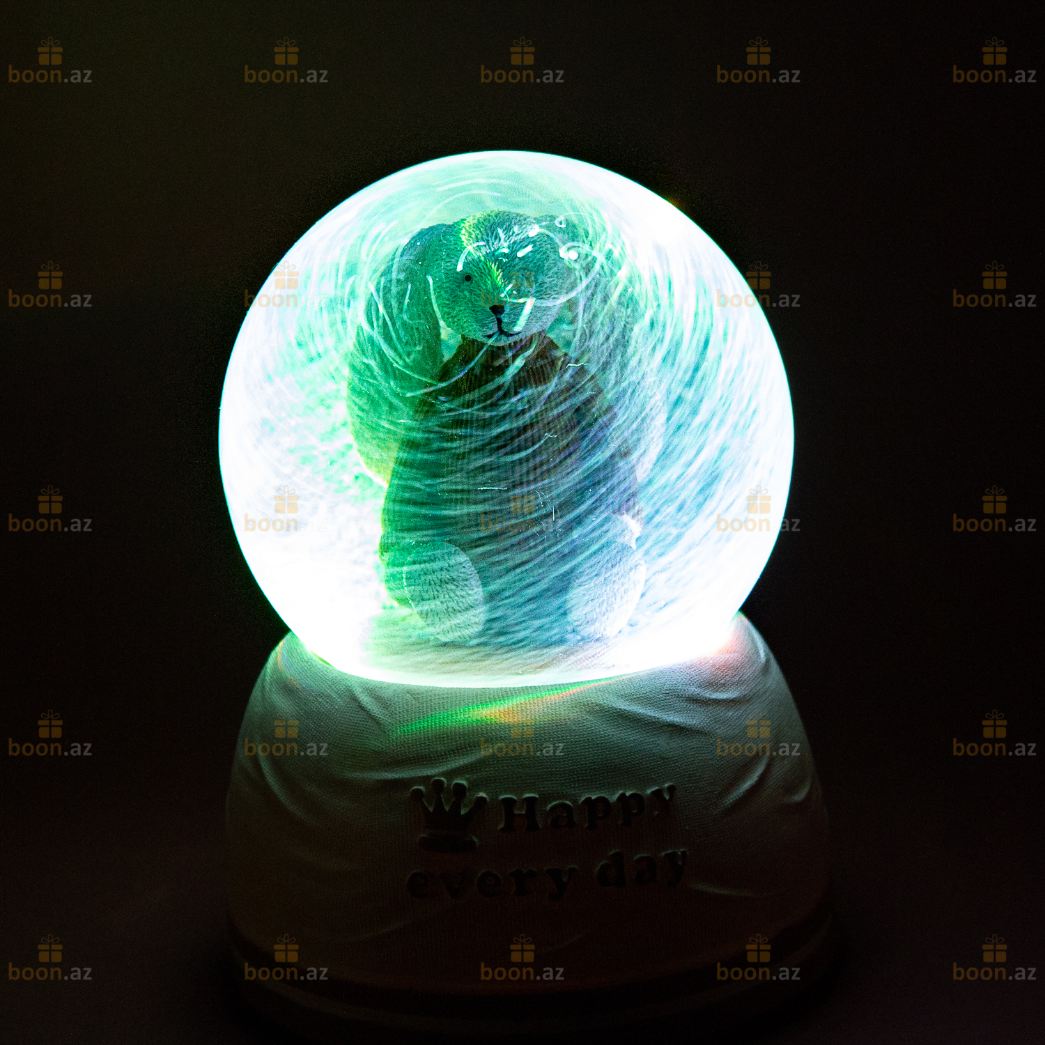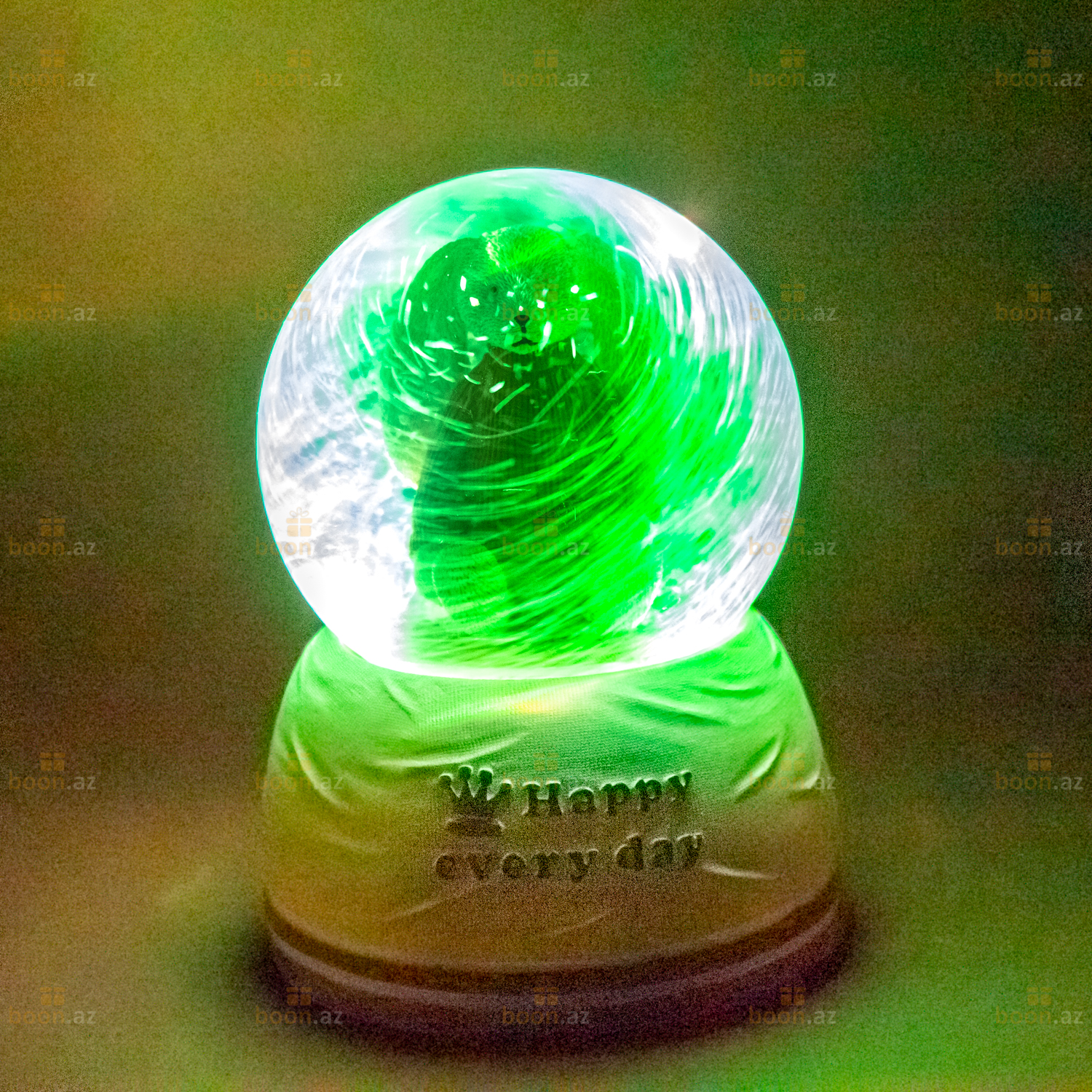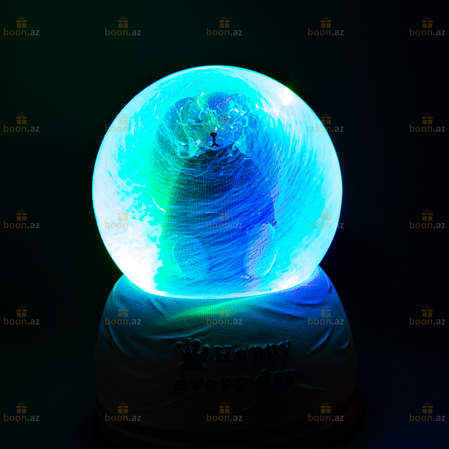 При включение снежного шара, снежинки внутри начинают плавать в жидкости и создают эффект снежной бури.