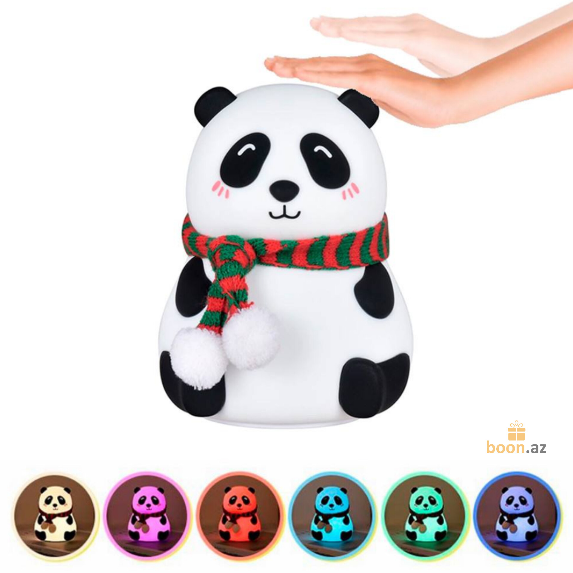 Панда Losso - это светодиодный ночник со всеми цветами радуги. Этот милый сенсорный ночник имеет 2 режима работы. Нажав кнопку включения с нижней стороны, светильник начнет светится тёплым белым светом. При легком хлопке по макушке Панды, он начнет изменять цвет по кругу каждые 3 секунды и будет работать в таком режиме до следующего хлопка. Второй хлопок фиксирует цвет - Панда будет светится в одном свете до следующего - третьего хлопка. Последний - выключит лампу. А дальше все сначала.