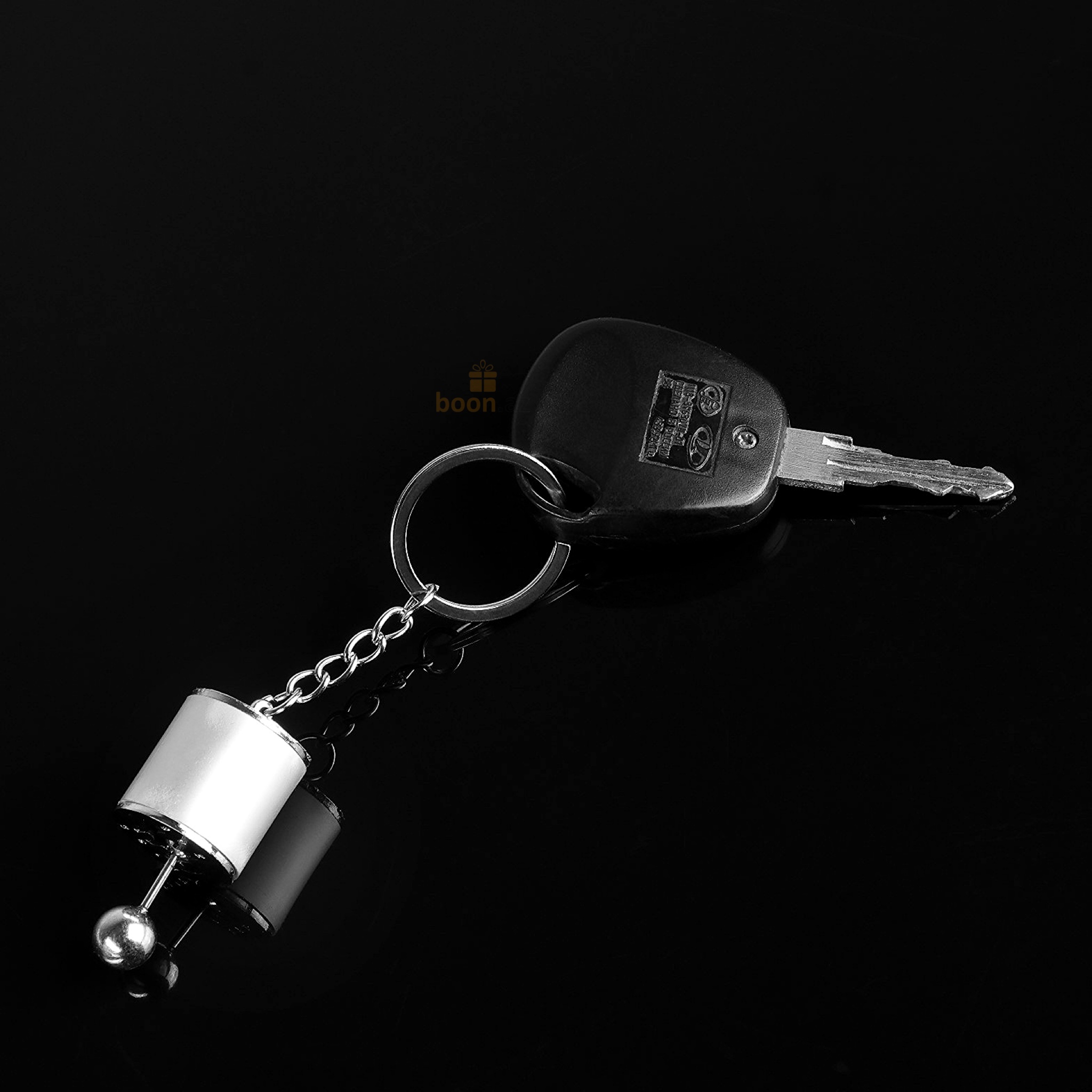 Брелок изготовлен из качественного металла, в комплекте практичное и надежное кольцо для ключей. Ручка переключения также металлическая, подвижна и при переключении фиксируется на выбранной скорости. Легкие щелчки при переключении и приятное сопротивление рычага реализуются благодаря встроенной в корпусе пружине и ограничителю.