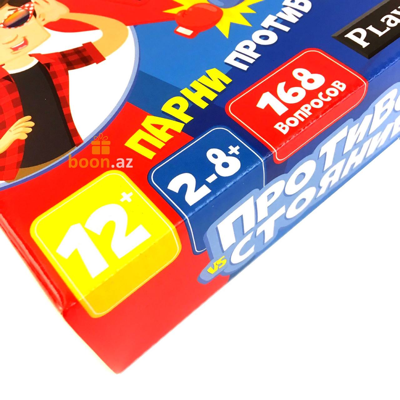 Противостояние. Парни против Девушек – это состязательная игра для большой компании. Разбейтесь на 2 команды и поставьте, наконец, точку в бесконечном конфликте полов. Парни профессионалы в вопросах, касающихся спорта и машин, а понимают ли они что-то в кулинарии или моде? Девушкам тоже придется довольно нелегко, ведь они должны будут выкручиваться, отвечая на вопросы о мужских интересах. Для каждой из сторон в этой игре специально подобраны вопросы, с легкостью ответить на которые будет возможно только в том случае, если игроки максимально хорошо знакомы с увлечениями противоположного пола! Совершенно точно можно сказать только одно. Ни одной из сторон не удастся с легкостью выйти победителем из этой захватывающей битвы полов!