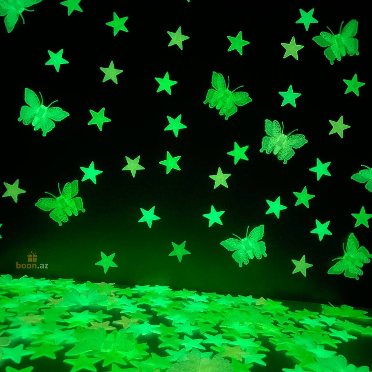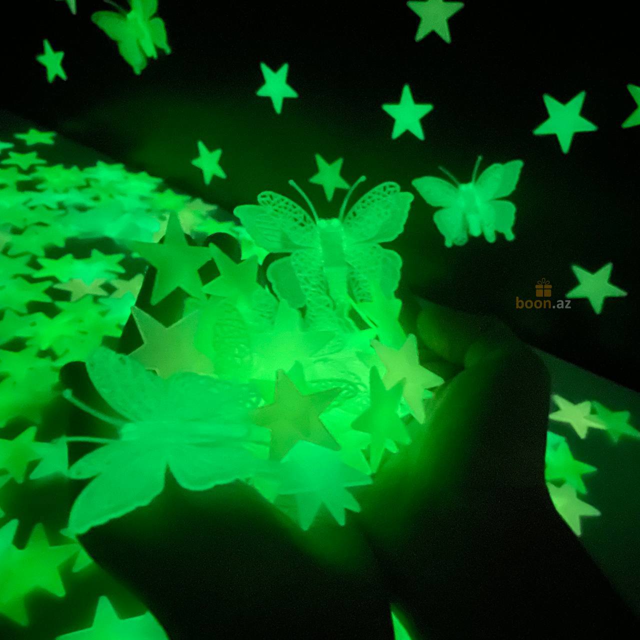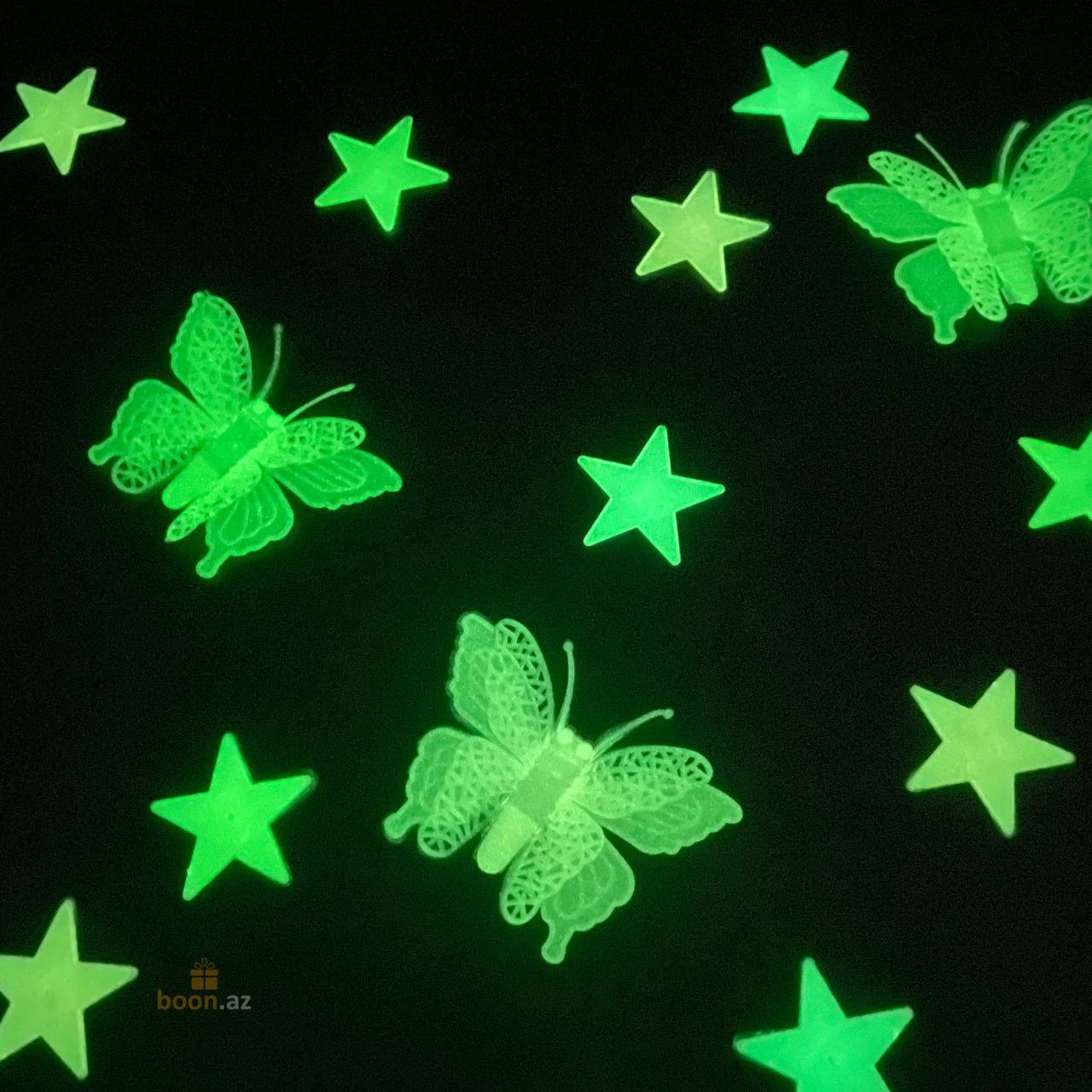 Цвет бабочек: зеленый, розовый, синий, желтый.