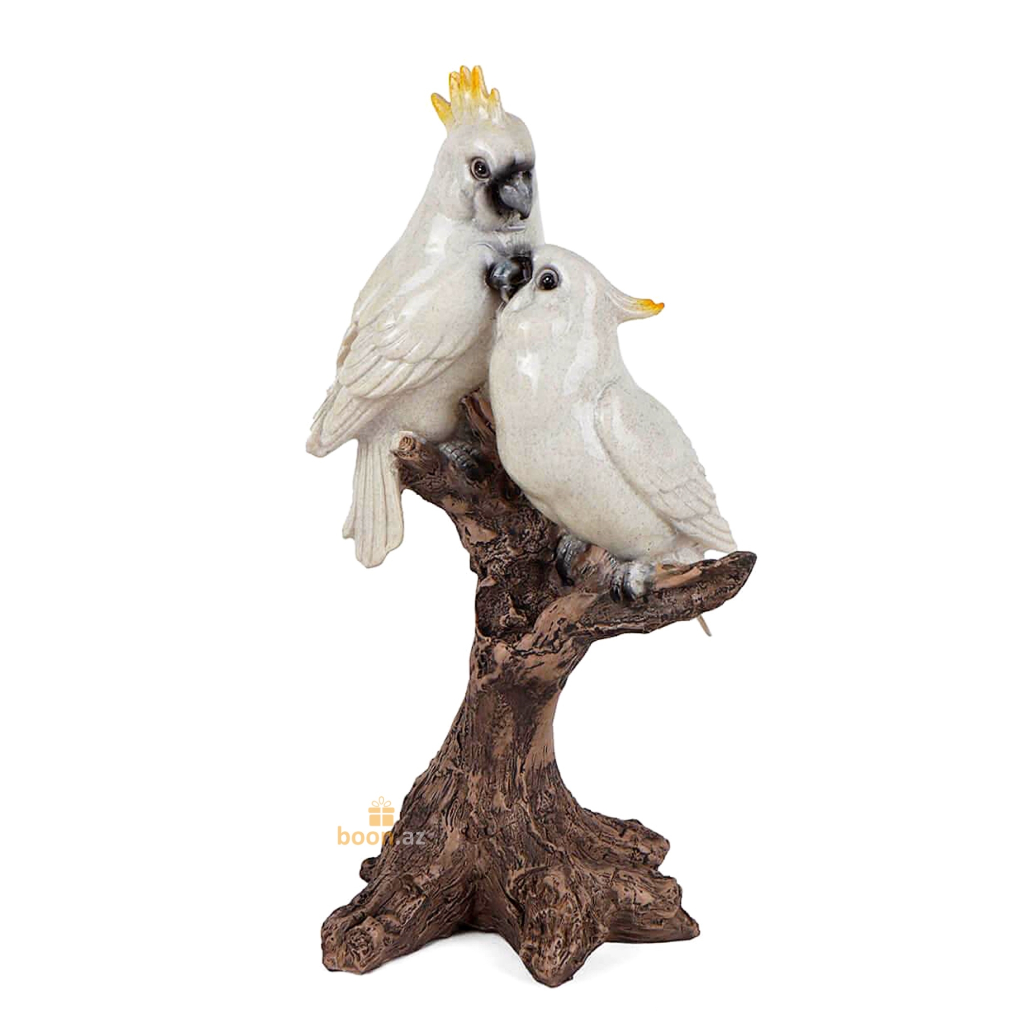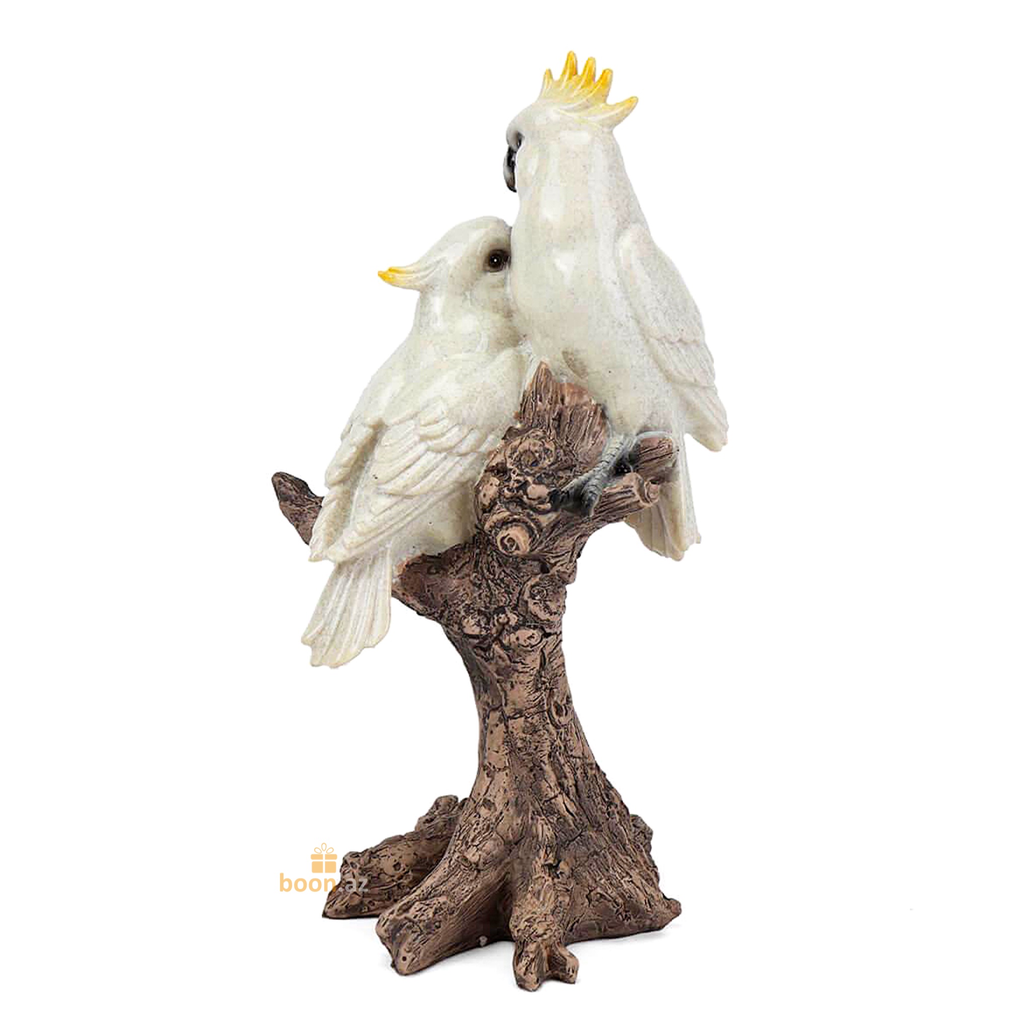 Декоративная статуэтка влюбленных попугаев – это элегантная, изысканная фигурка, которая идеально подойдет для подарка второй половинке. Она станет прекрасным сувениром и в вашем доме! Влюбленная пара попугаев благородного белого оттенка с желтыми хохолками сидят на ветке.