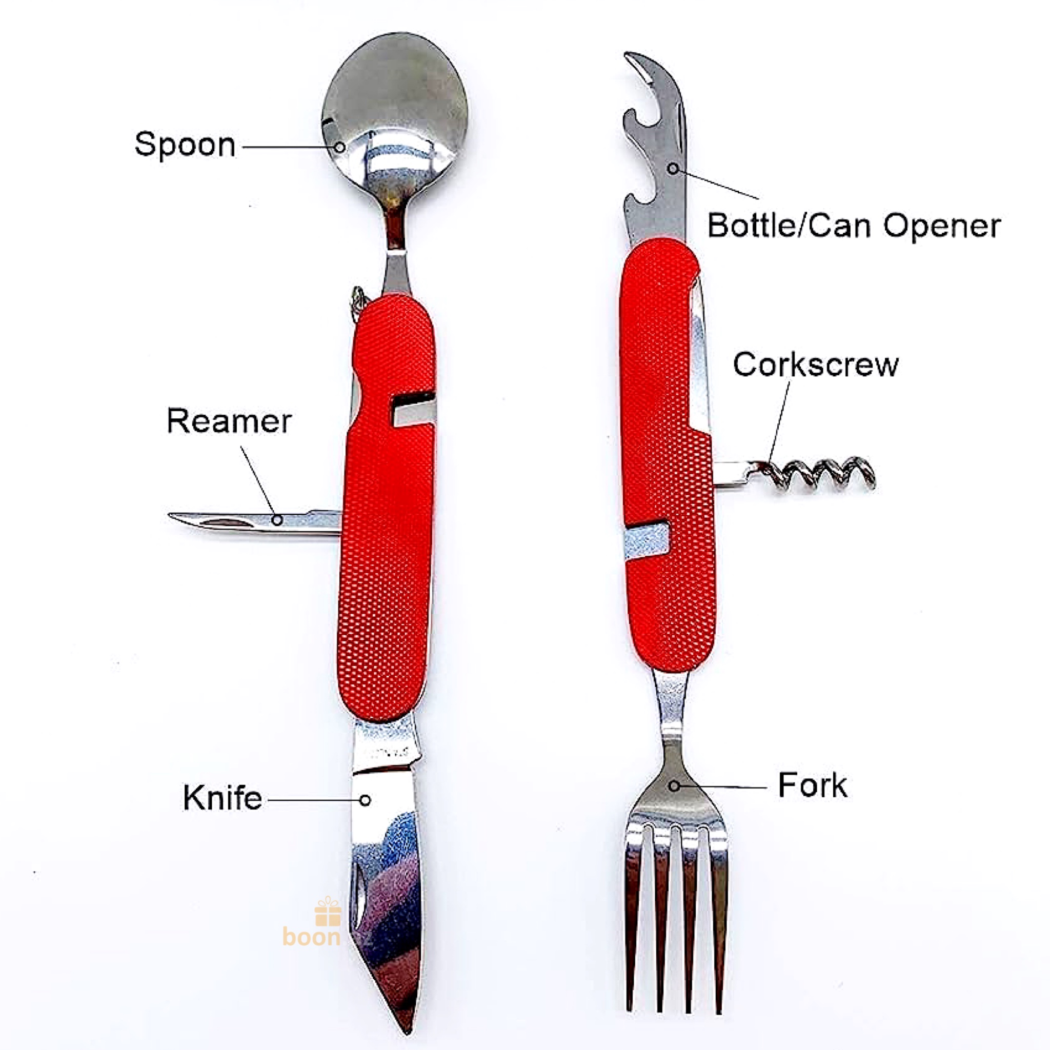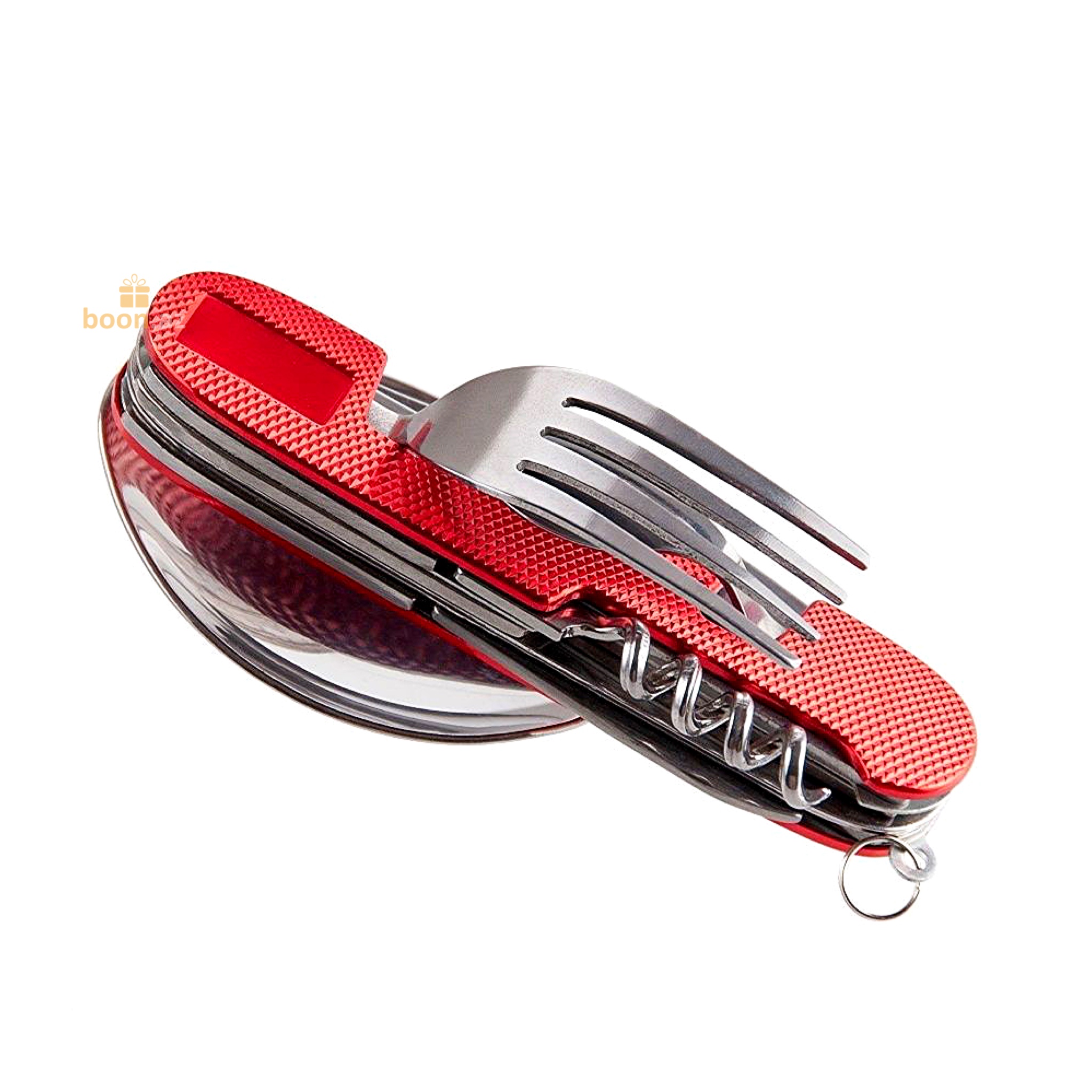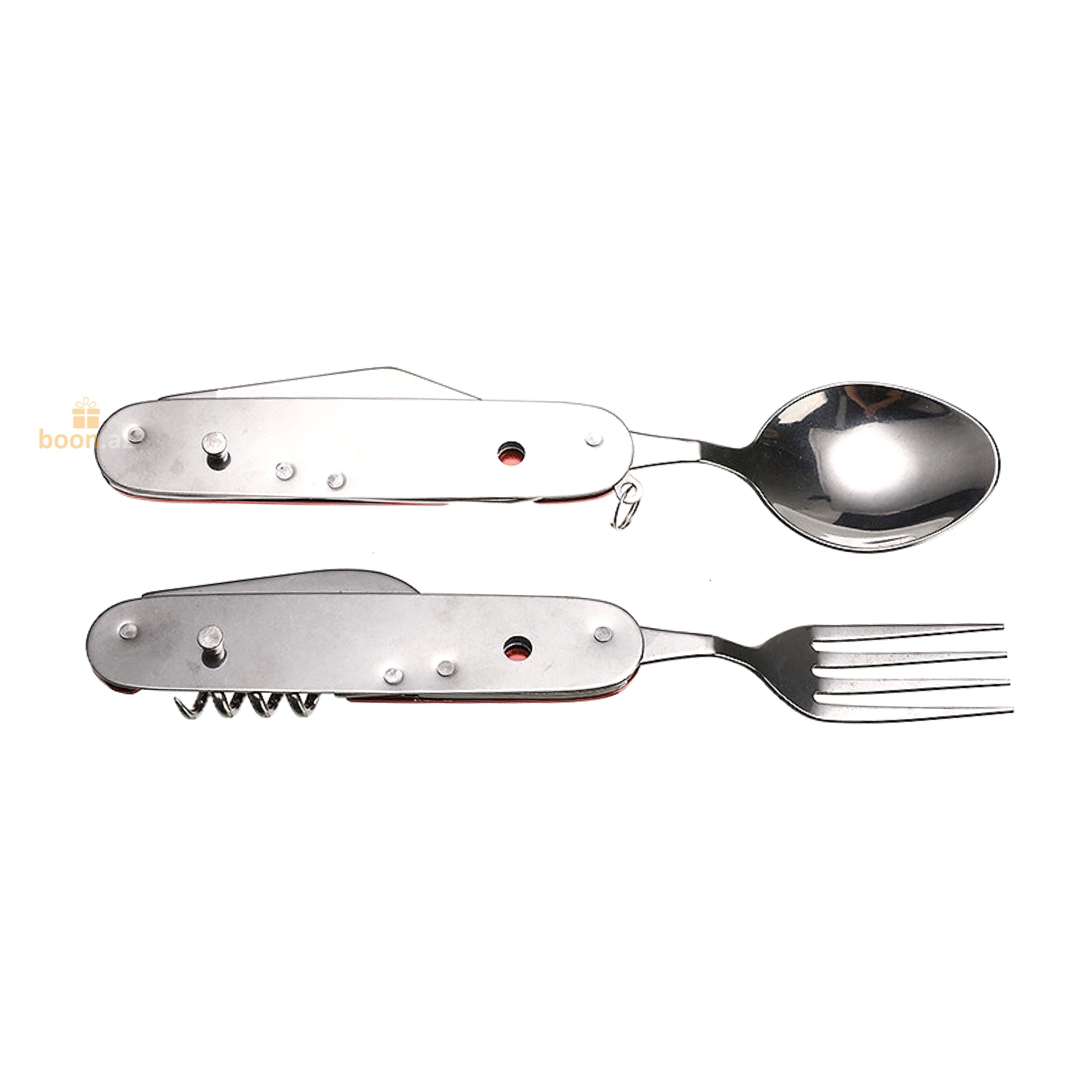 Мультитул туристический - это набор столовых приборов ложка, вилка, нож, необходимых в дороге. Можно легко разобрать на два предмета, чтобы одновременно пользоваться ложкой и вилкой. Включает все необходимое: вилка, ложка, нож, открывалка, штопор, шило. В сложенном виде всего 11 см и небольшой вес, помещается в карман. Пригодится в походе, кемпинге на пикнике. Сделано из нержавеющей стали. Яркий цвет заметен в траве. Прочный металлический корпус. Практичный мультитул для поездок, командировок, турпоходов. Удобно иметь в машине, можно пристегнуть к рюкзаку, одежде за кольцо для брелка. Походный набор - выручит в любой ситуации. Набор включает в себя столовые приборы необходимые в походах, пикниках, на рыбалке или на даче.