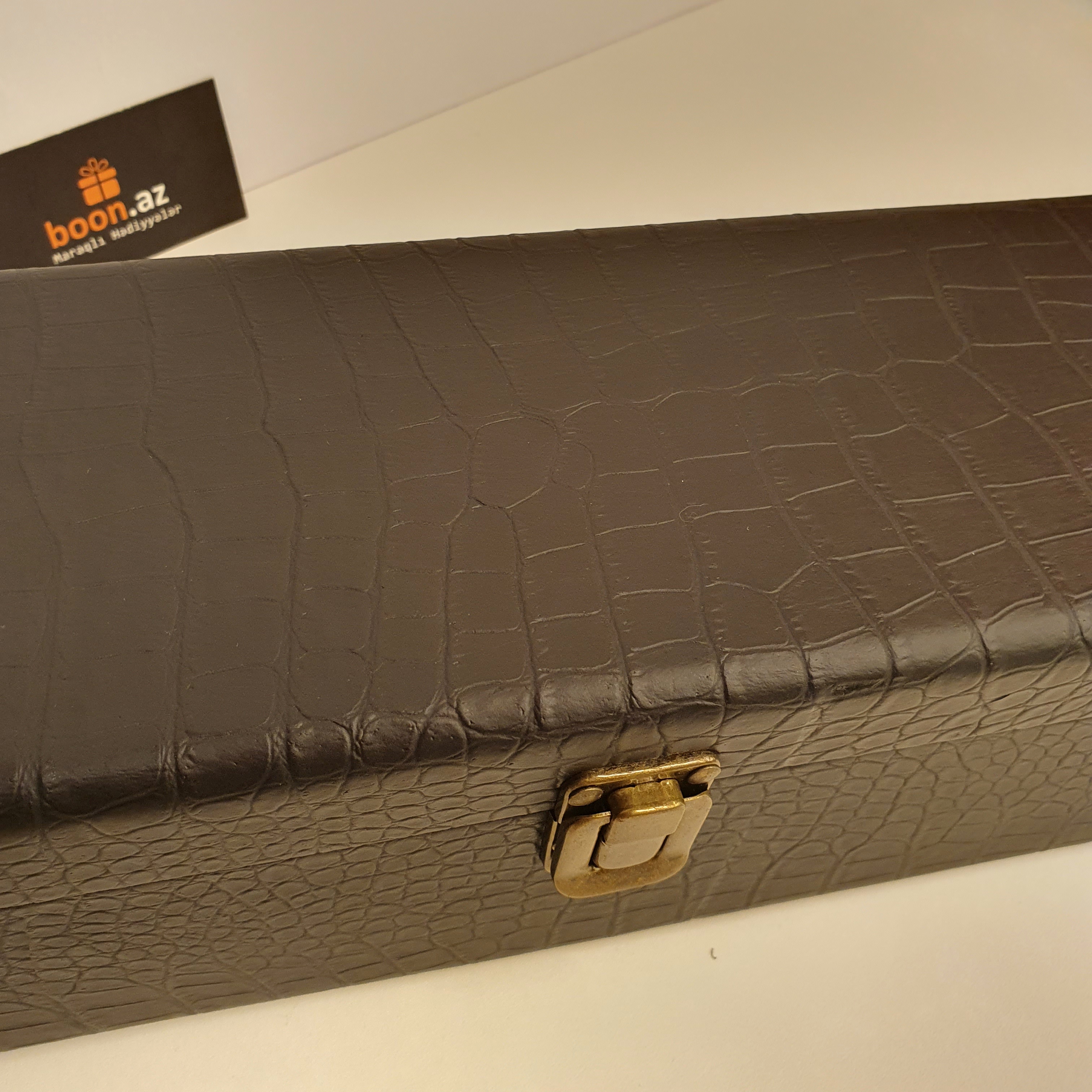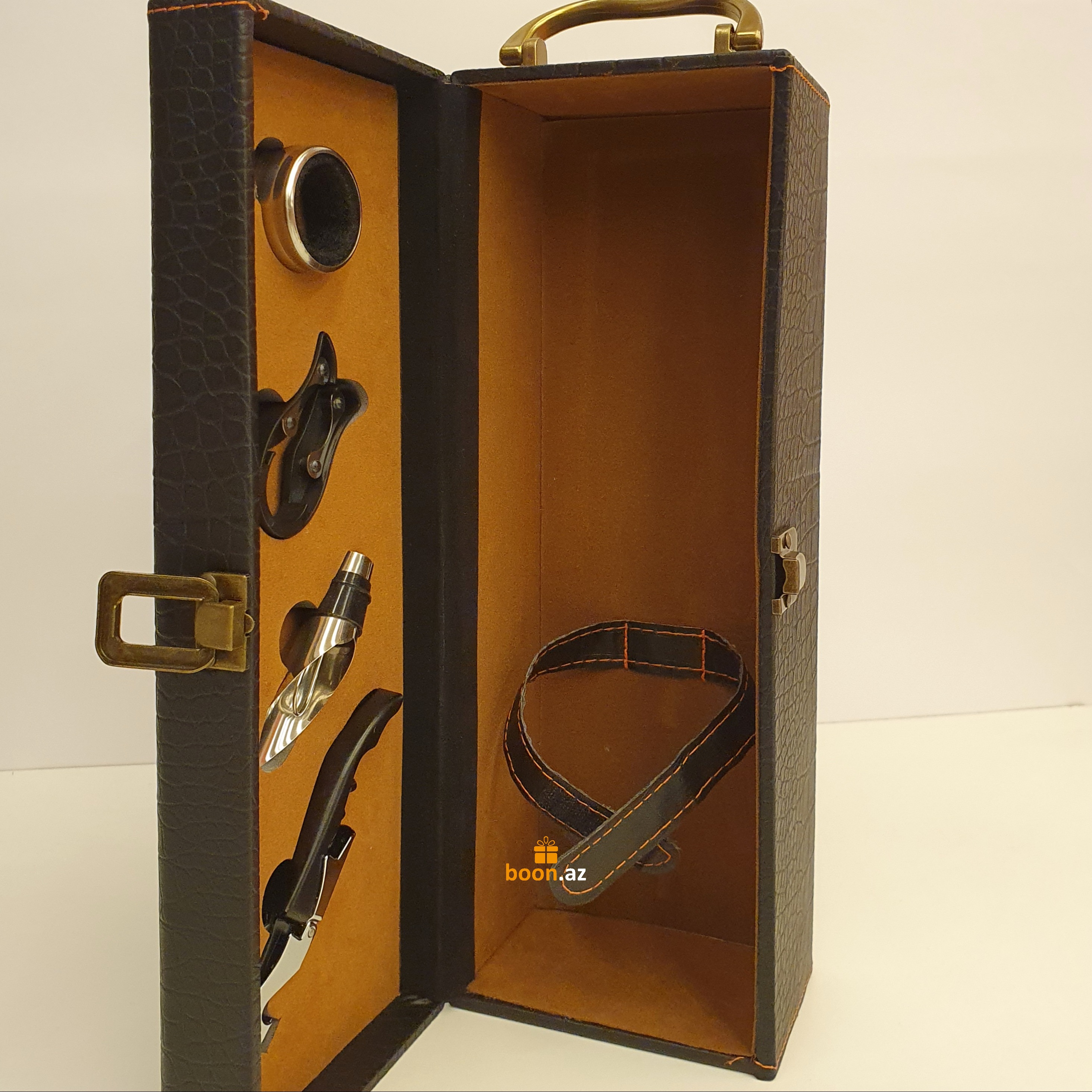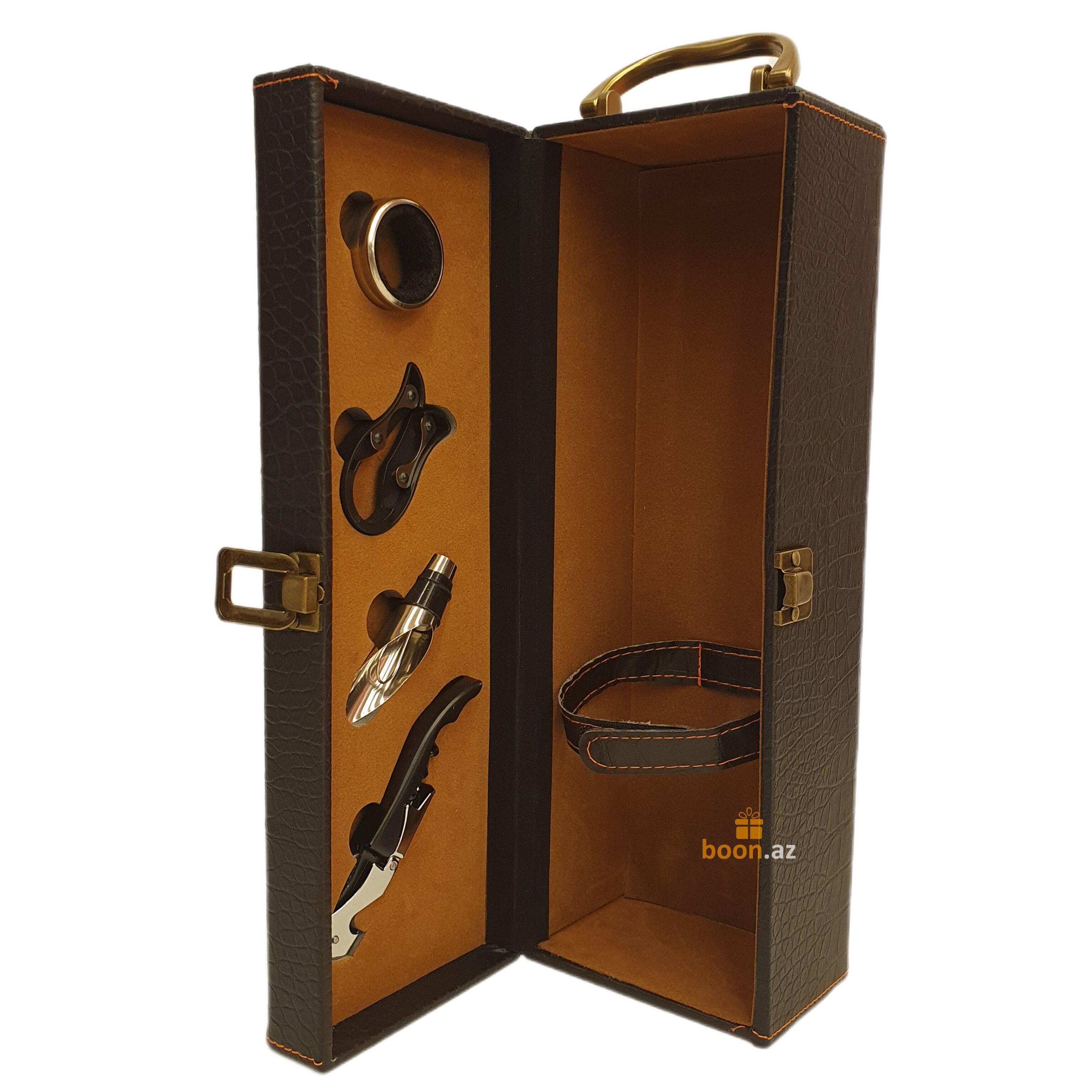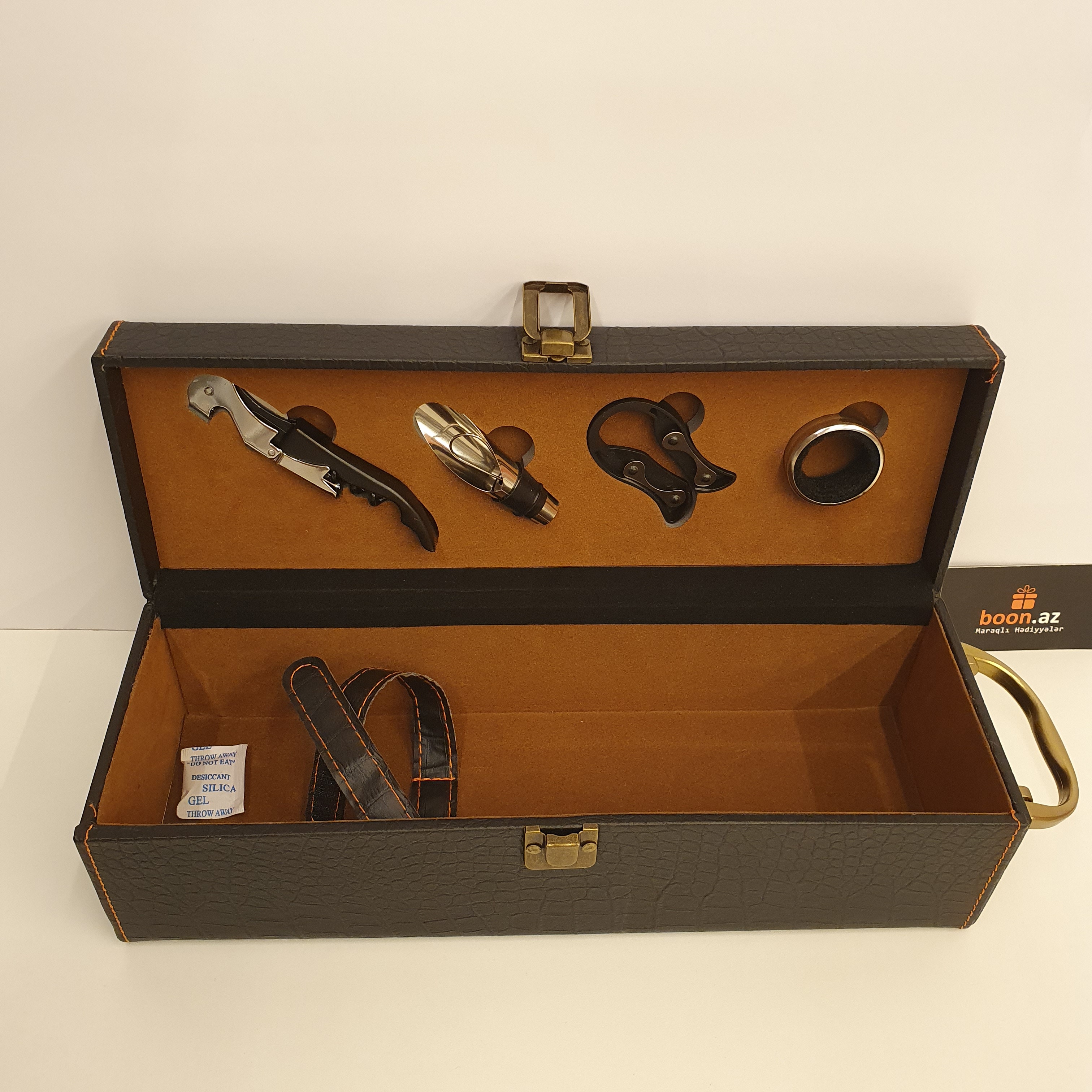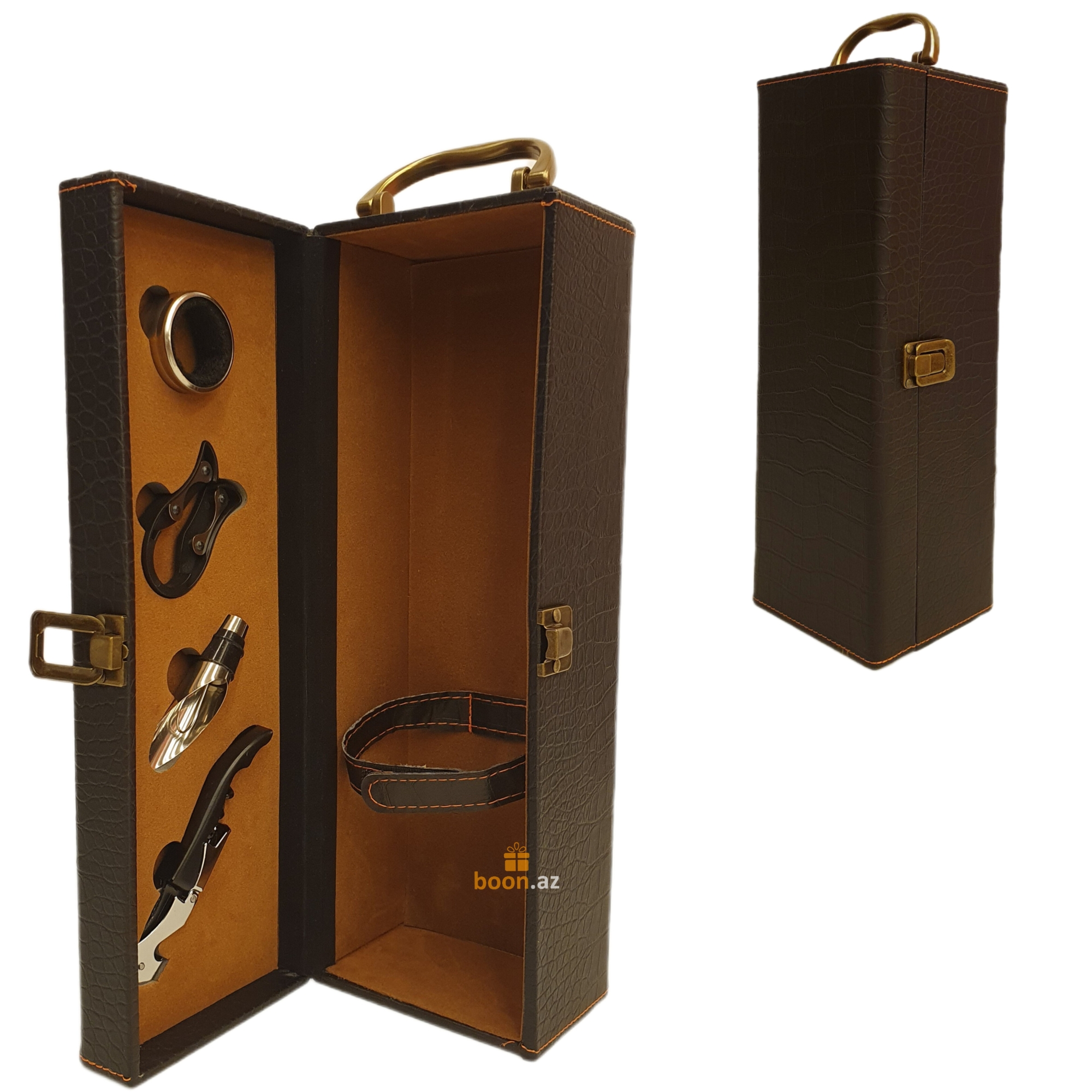 Подарочный набор "Cомелье"   – это идеальный выбор для истинных ценителей изысканных вин. Этот комплект станет незаменимым помощником на любой вечеринке или торжестве, позволив вам и вашим гостям наслаждаться богатством вкуса и аромата различных сортов вин. Кейс выполнен из высококачественной искусственной кожи под кожу крокодила, что обеспечивает его долговечность и сохранность содержимого. Внутри кейса есть отделения для бутылки обшитые материалом под бархат, которые обеспечивают надежную фиксацию и защищают от нежелательных движений. Коробка винная оснащена качественной фурнитурой: ручка, петли и замок. Набор сомелье, который входит в комплект кейса, включает в себя все необходимое для профессиональной дегустации вина: специальная пробка, позволяющая сохранить свежесть и вкус напитка, а также аэратор, который помогает раскрыть тончайшие нотки аромата. Кроме того, в комплекте идет нарзанник – многофункциональный нож официанта для удобного и быстрого открывания вина, каплеуловитель и нож сомелье - специальный нож с узким лезвием для срезания фольги на горлышке бутылки. С помощью этого набора вы сможете удивить своих гостей не только широким ассортиментом вин, но и мастерством их подачи. Кейс для вина с набором сомелье станет прекрасным подарком для всех, кто ценит изысканные напитки и хочет научиться разбираться в их особенностях. Кроме того, футляр под алкоголь станет превосходным украшением праздничного подарка любителям благородных напитков.