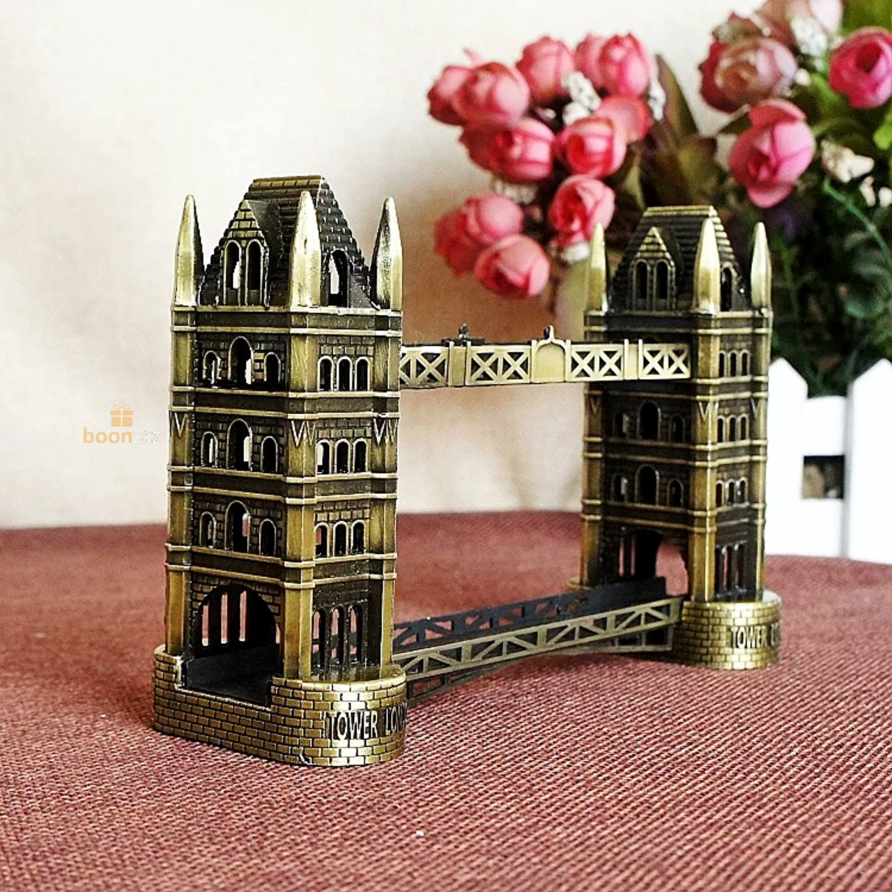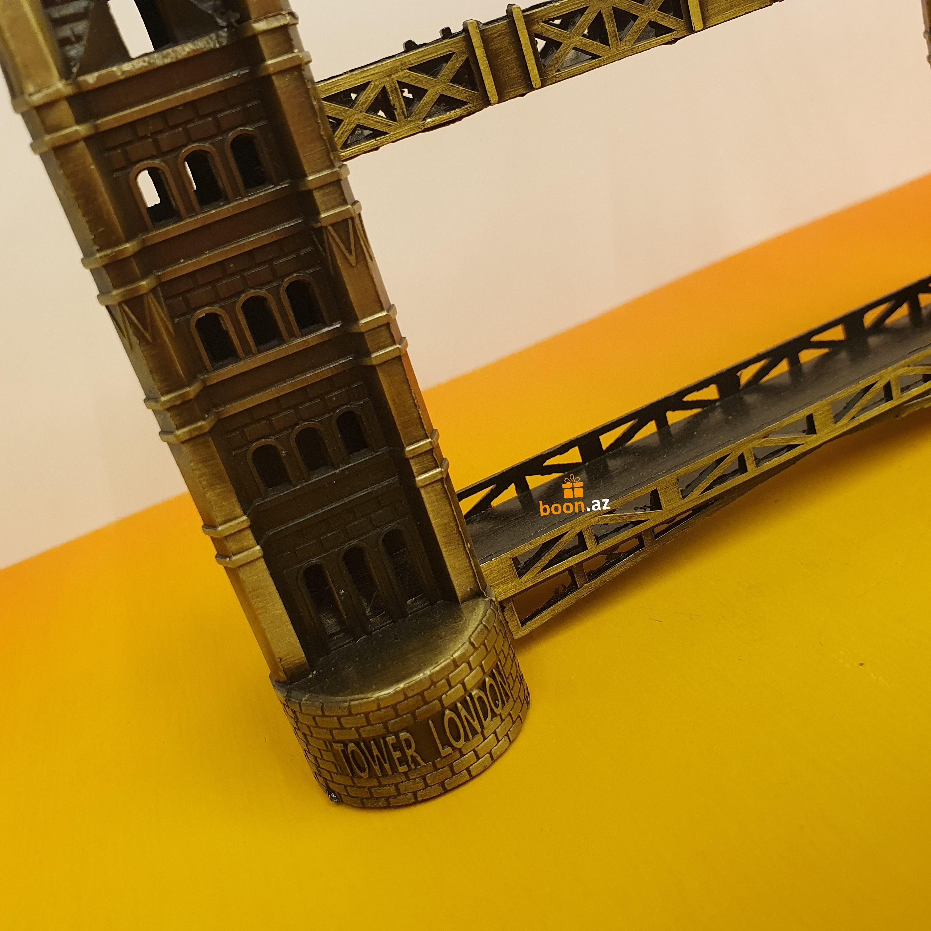 Миниатюрная модель Моста Лондона — это точная реплика этого знаменитого моста, уменьшенная до маленького размера. Она изготовлена из металла и детально воспроизводит архитектурные особенности и дизайн моста. Эта модель представляет собой символ города Лондон и его исторического значения. Такие миниатюрные модели часто предназначены для декоративных целей или в качестве сувенира, который люди могут приобрести как память о своем посещении Лондона или в качестве подарка для любителей истории и архитектуры. Их можно разместить на полке, столе или в другом месте в доме или офисе для создания атмосферы и напоминания о прекрасном городе и его знаковом сооружении.