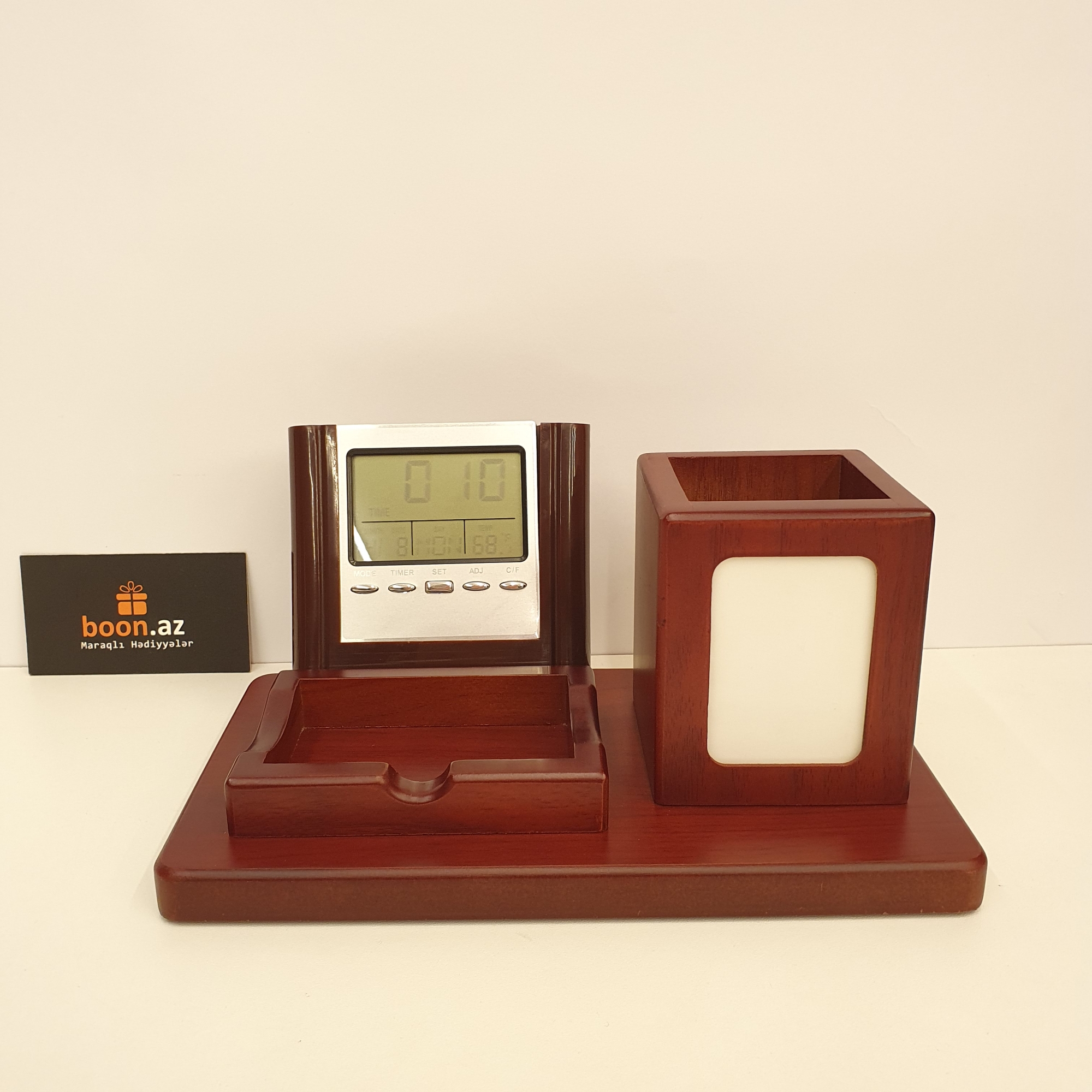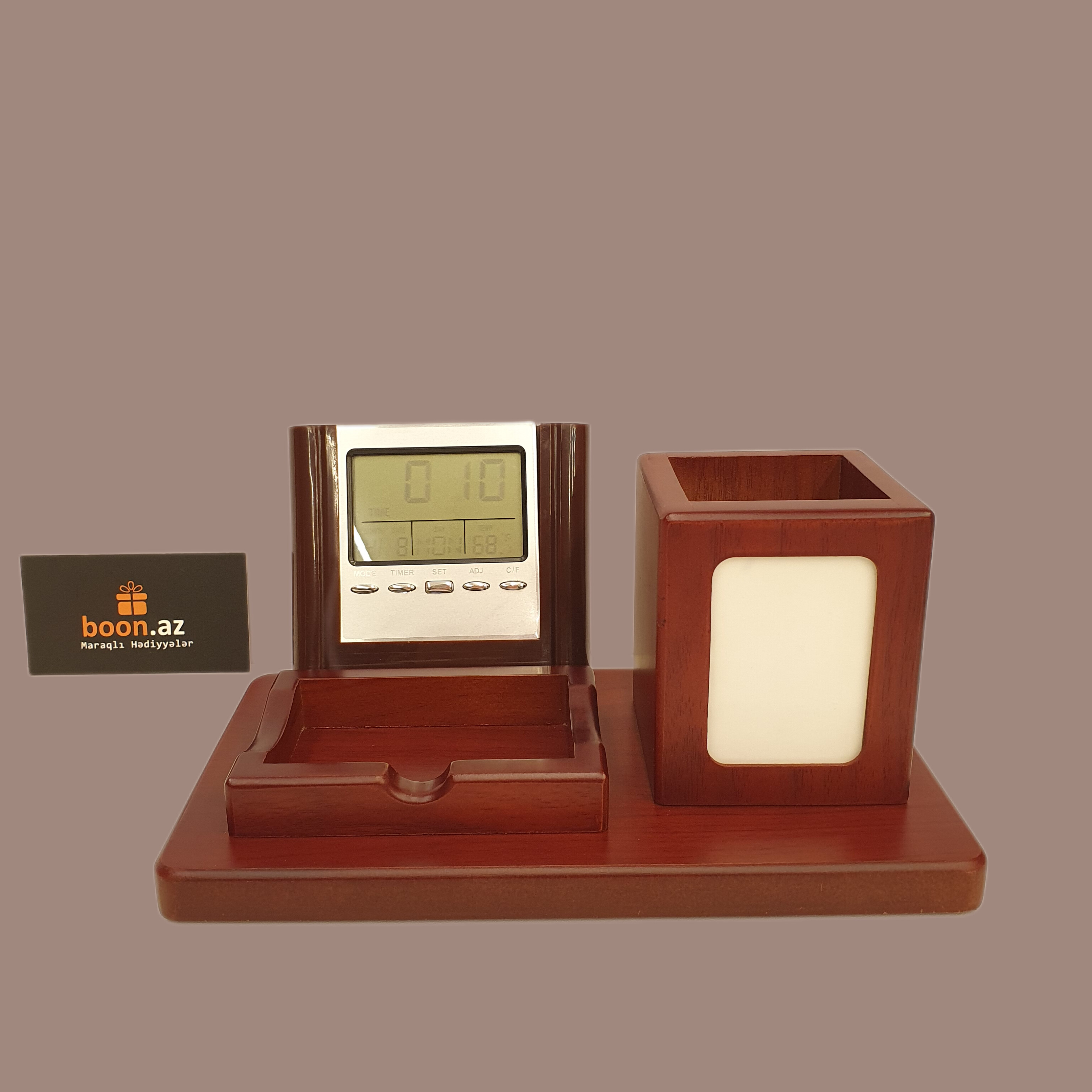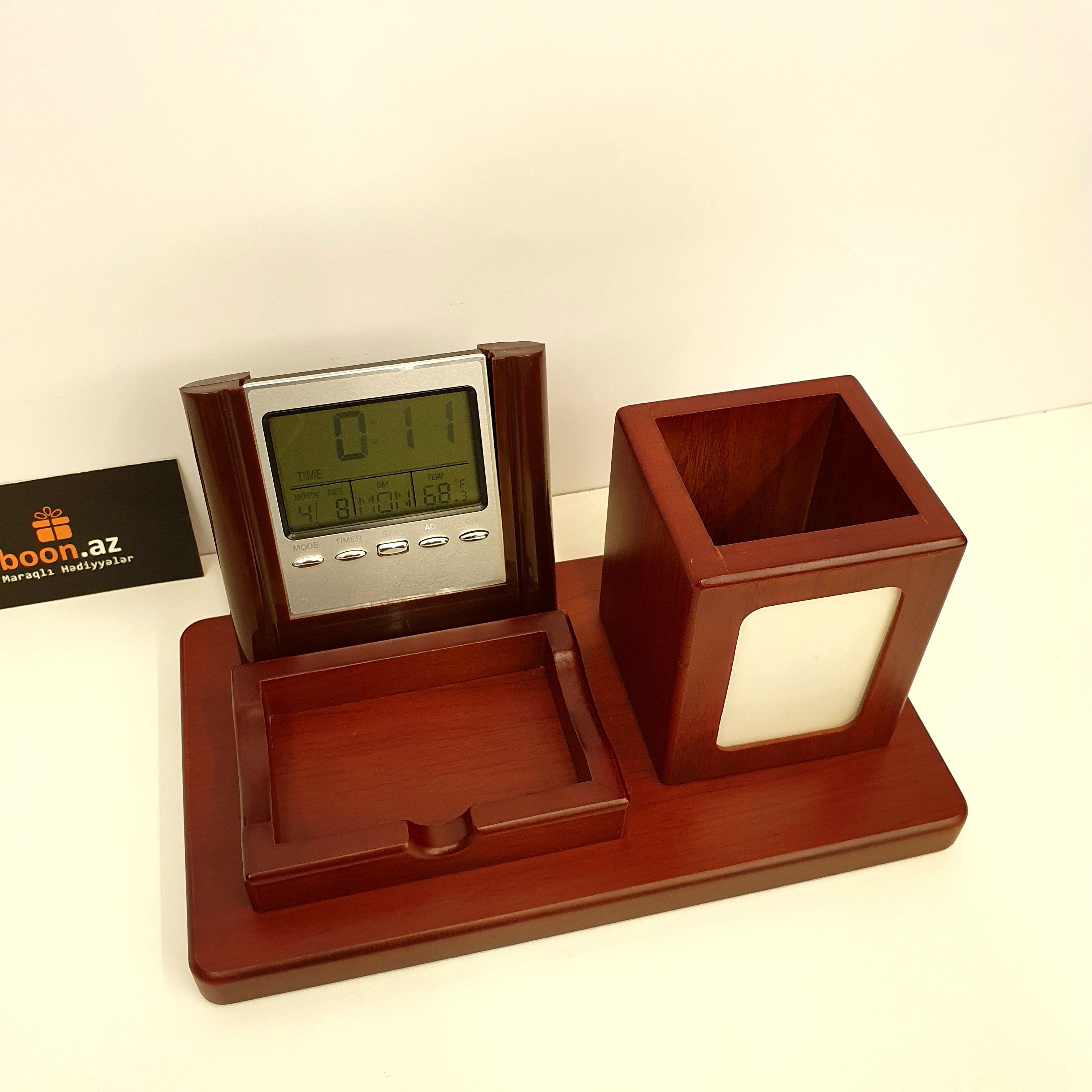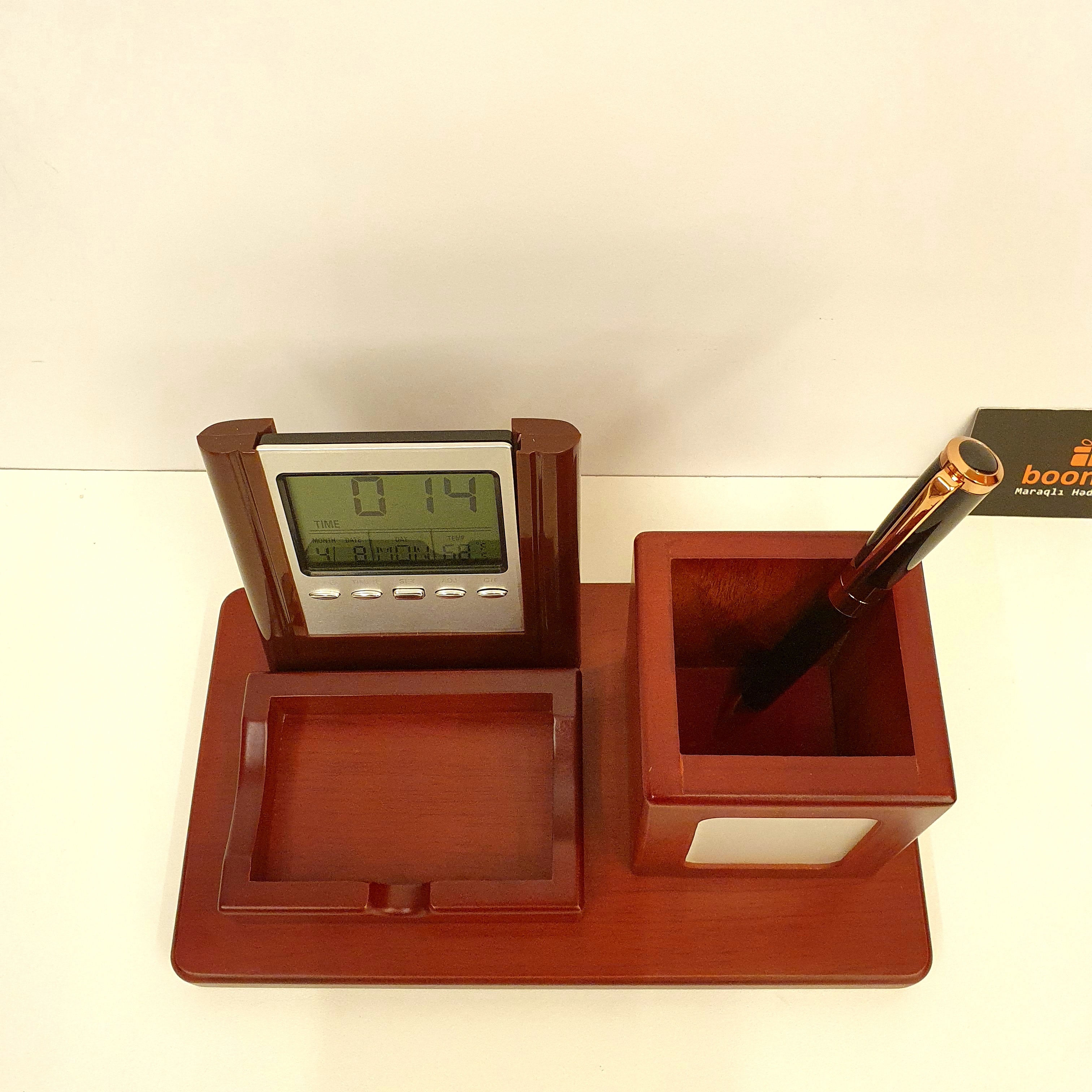 Порой рабочий стол настолько загружен, что негде расписаться или составить документ от руки. А на большинство людей беспорядок действует негативно, снижает концентрацию и продуктивность. Компактный настольный набор поможет избежать хаоса на рабочем месте. Храните в нём канцелярские принадлежности или другие мелочи, чтобы правильно организовать пространство. К тому же изделие имеет минималистичный дизайн и выполнено под дерево, поэтому оно украсит собой любое место как декоративный элемент. С помощью такого аксессуара можно поздравить сотрудников, руководство, деловых партнёров, также он подойдёт в качестве подарка учителям и преподавателям.