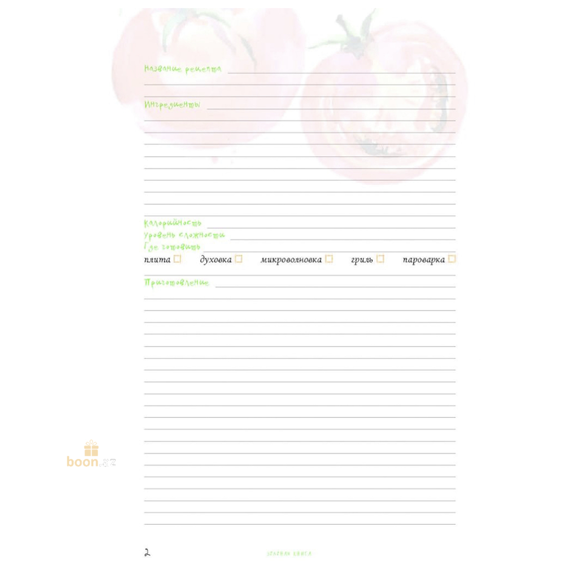 В природе существует множество книг для записи рецептов, но не было еще ни одной для записи рецептов вегетарианских. И вот, встречайте! Наконец-то у вас появится книга, специально рассчитанная на любителей зеленого меню!