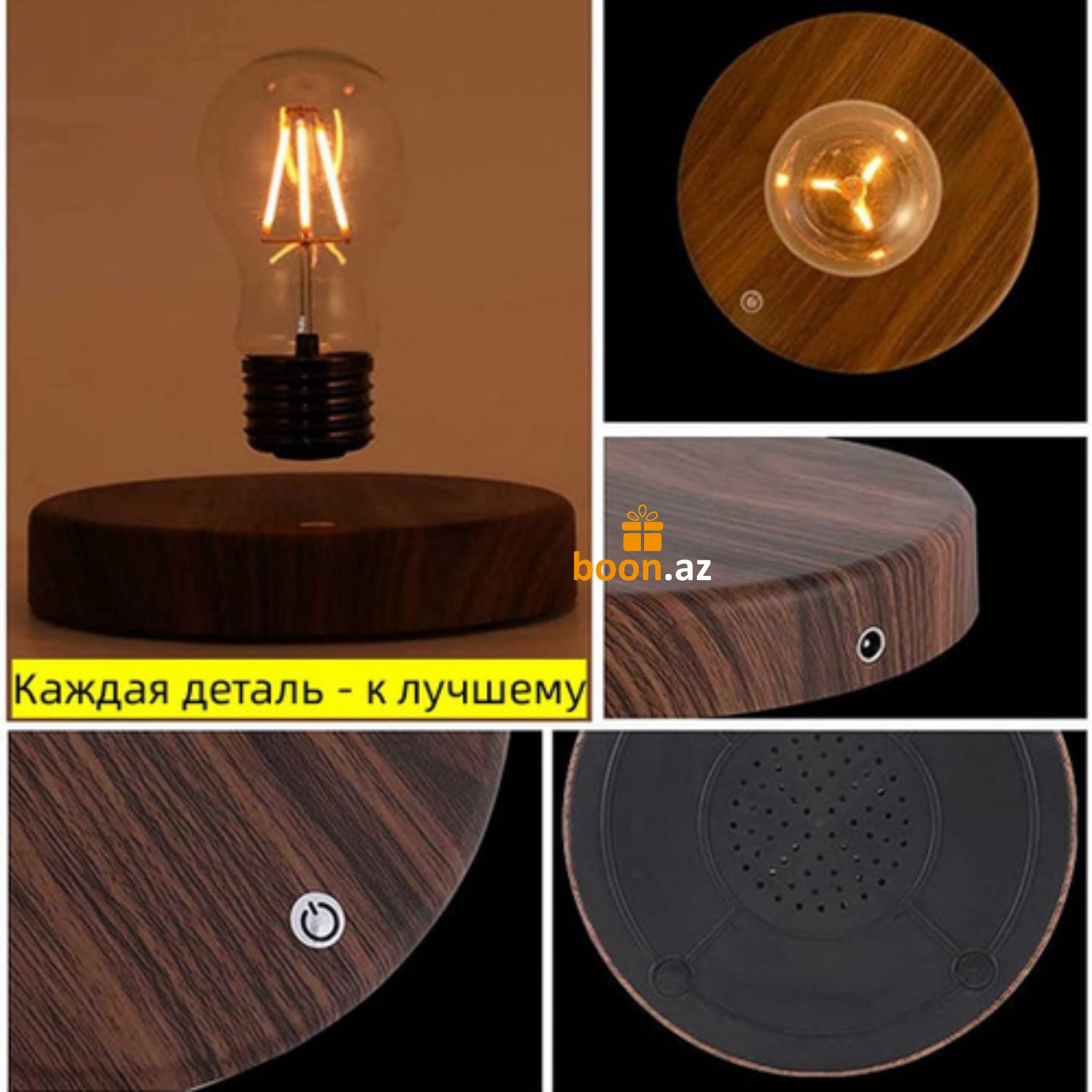 Эта уникальная лампа с эффектом парения сочетает в себе минимализм, стиль и инновации. Благодаря технологии магнитной левитации лампочка парит в воздухе, не касаясь основания, а встроенные светодиоды создают тёплое, уютное освещение. Основание под дерево добавляет эстетики и натуральности, идеально вписываясь в интерьер любого пространства — будь то дом, офис или студия. Отличный выбор для подарка и элемент, который точно привлечёт внимание.