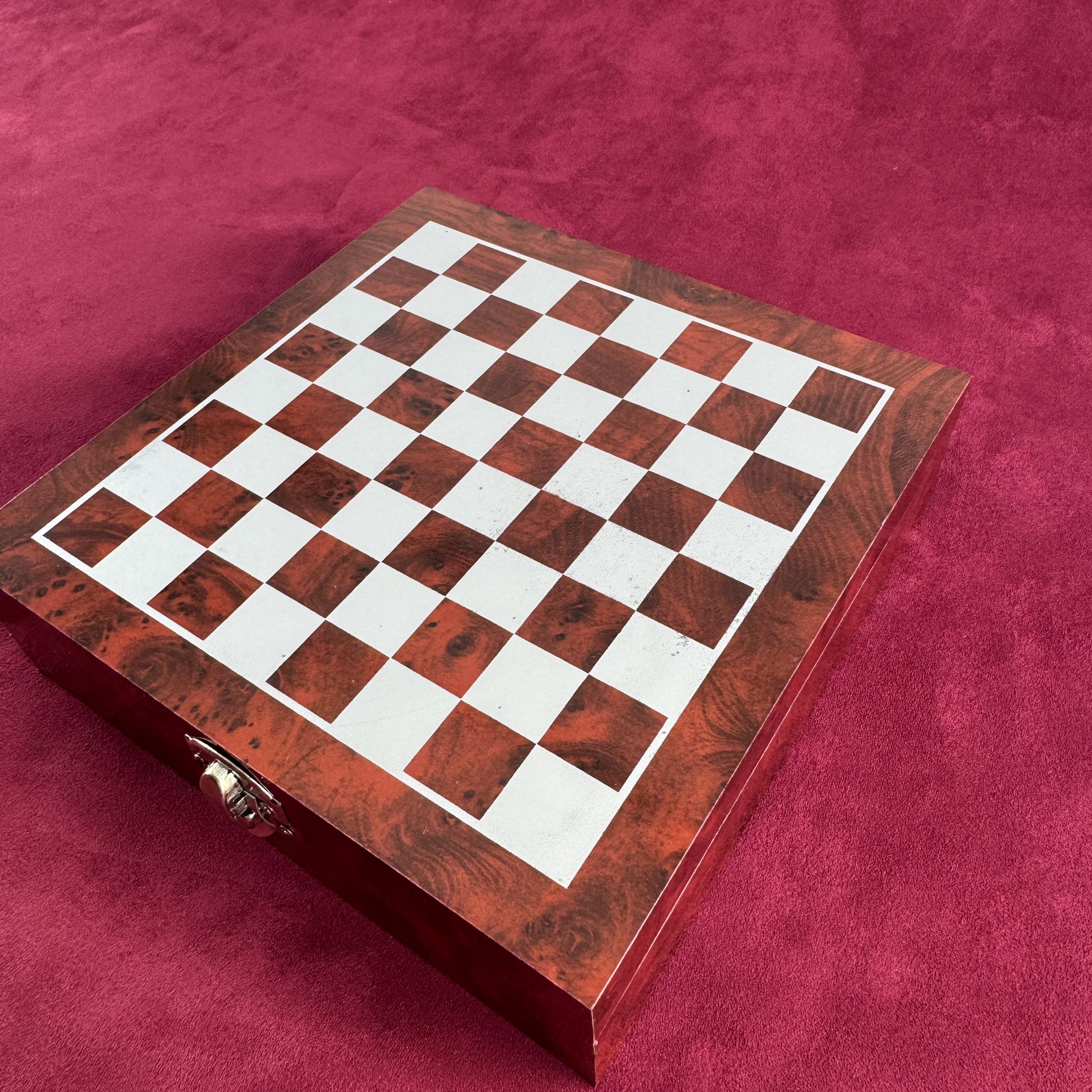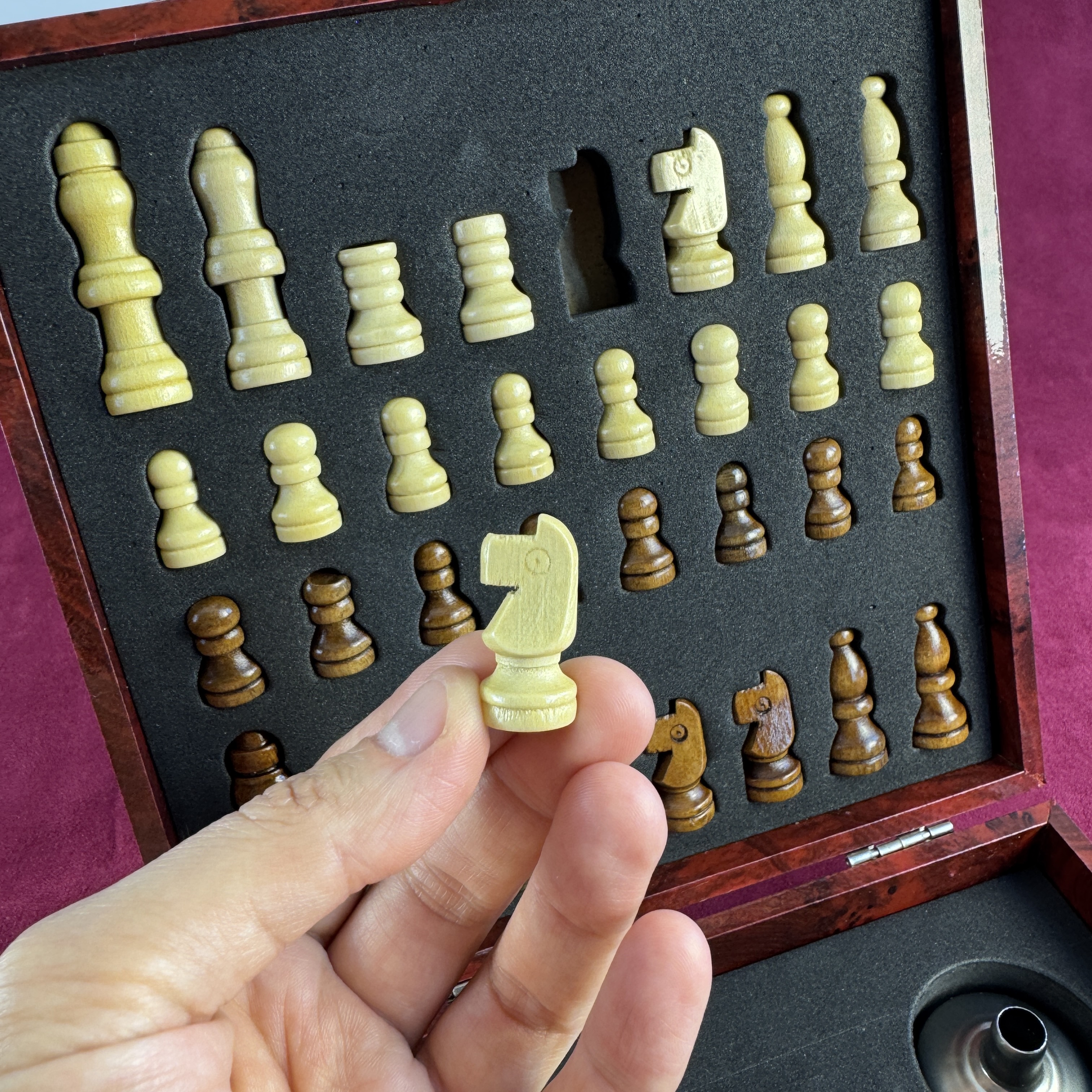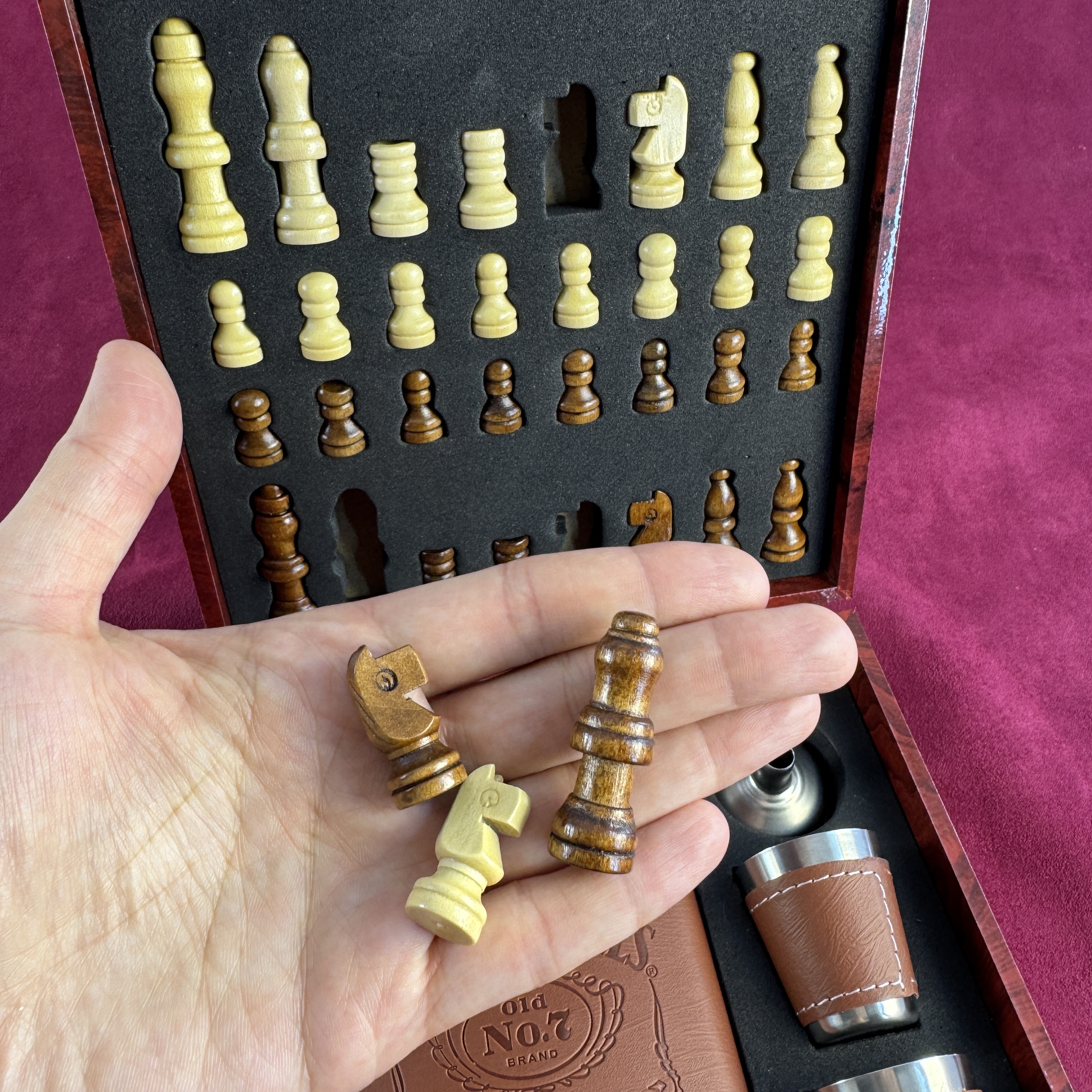 Шахматные фигуры выполнены из дерева, а компактный формат позволяет взять набор с собой на природу, в путешествие или подарить другу.