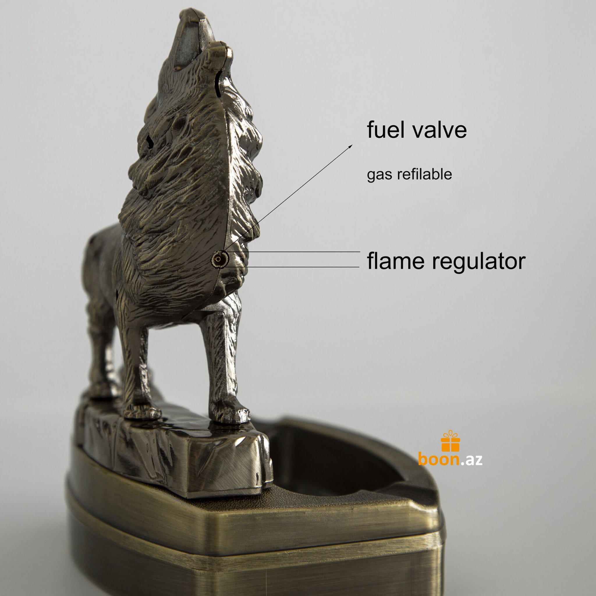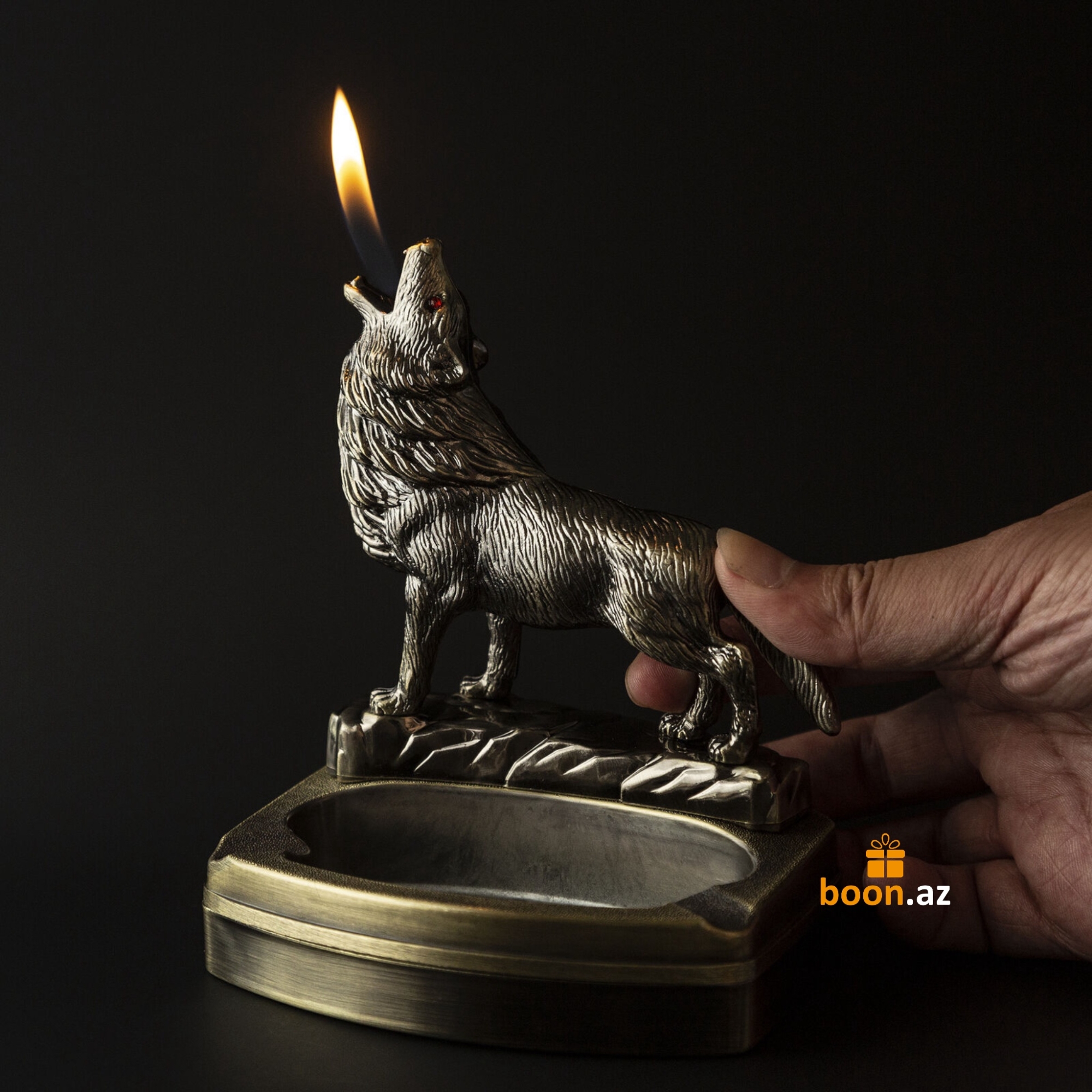 Эффектная и оригинальная пепельница в виде волка с встроенной зажигалкой. Пламя появляется из пасти волка, создавая впечатляющий визуальный эффект. Идеальный подарок для курильщиков и ценителей нестандартных аксессуаров.